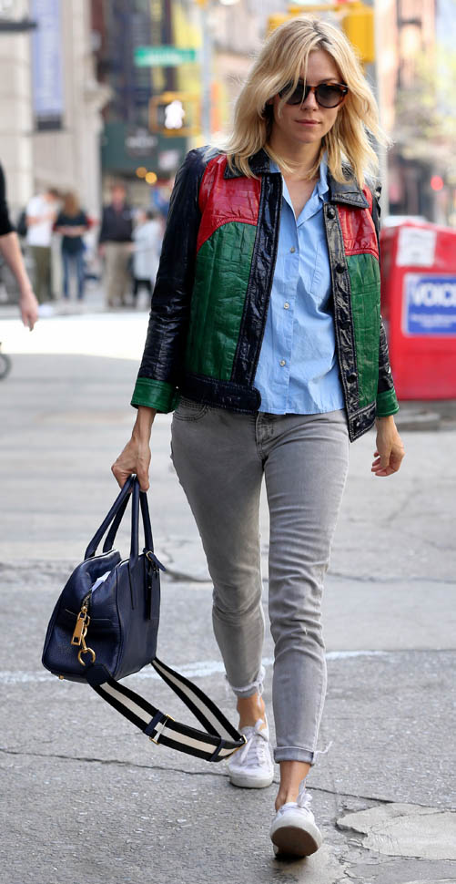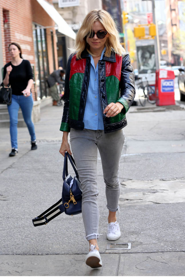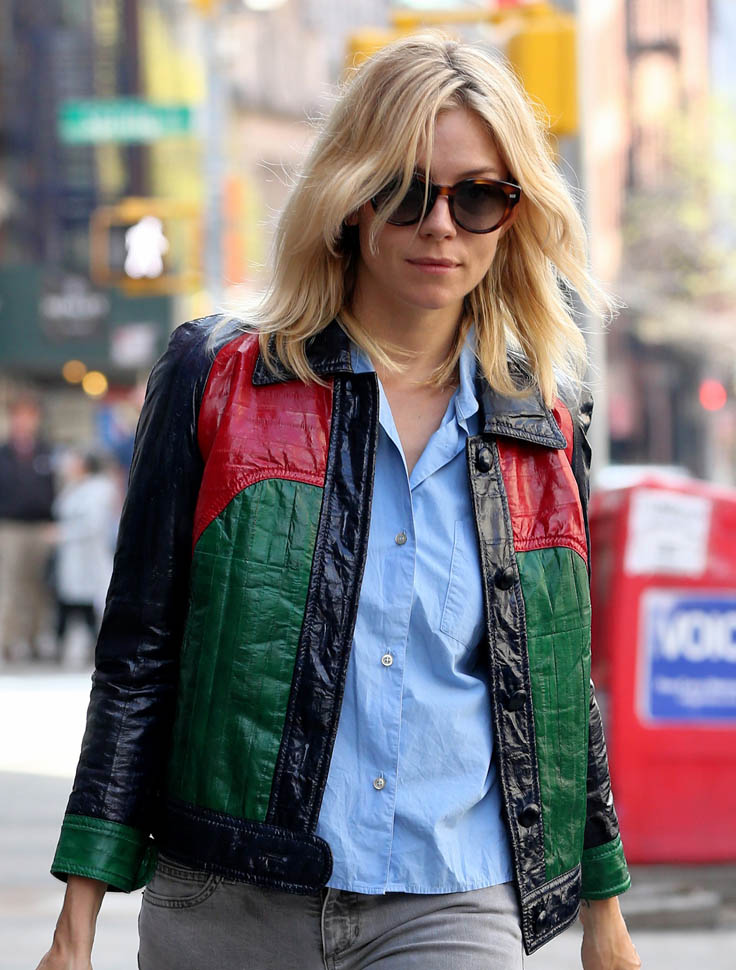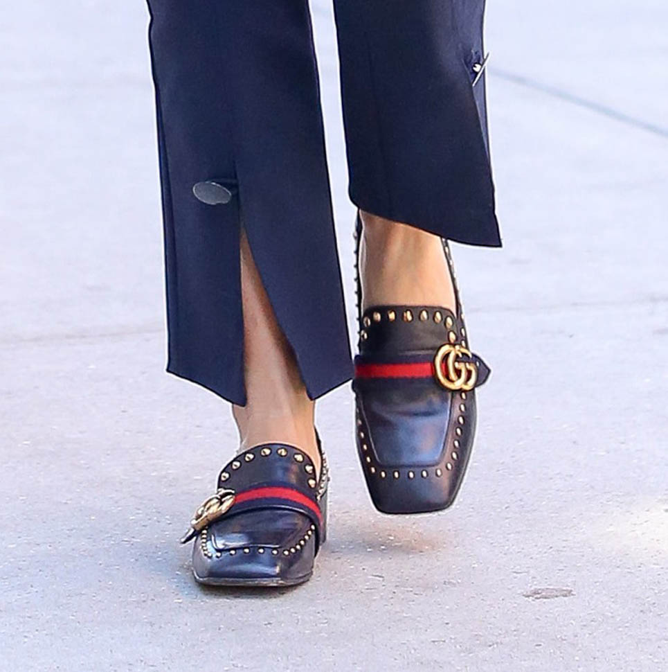 I haven’t even checked but I’m pretty sure this is Gucci because that’s Gucci red and it’s totally Gucci green and this jacket, OMG, this jacket is all the love and all the steeze. She also stepped out today in a pair of Gucci loafers that have my heart. Did she just go on a shopping spree or has she become one of theirs?