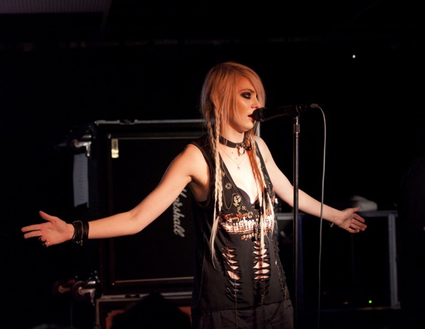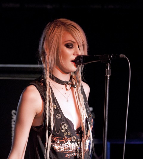 Anyway, here’s Cheryl arriving today at the Prince’s Trust with a hair style that screams “I’m small time”, and Taylor screaming into the mic during a performance in New Jersey the other night.
