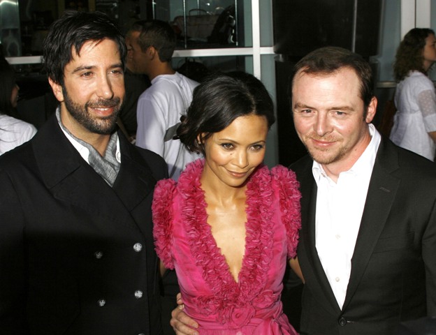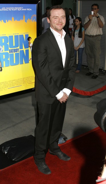 A one time member of the Freebie Five, Simon Pegg was on hand last night at the premiere of Run Fatboy Run, costarring Thandie Newton and directed by David Schwimmer. Yes, that David Schwimmer. The man who played limp Ross. Limp Ross who was inconceivably written as Rachel Green’s lobster… which to me has always been a television mystery.