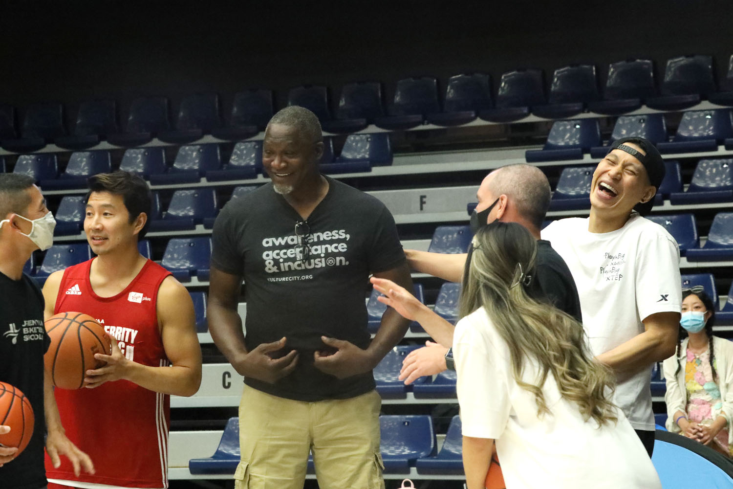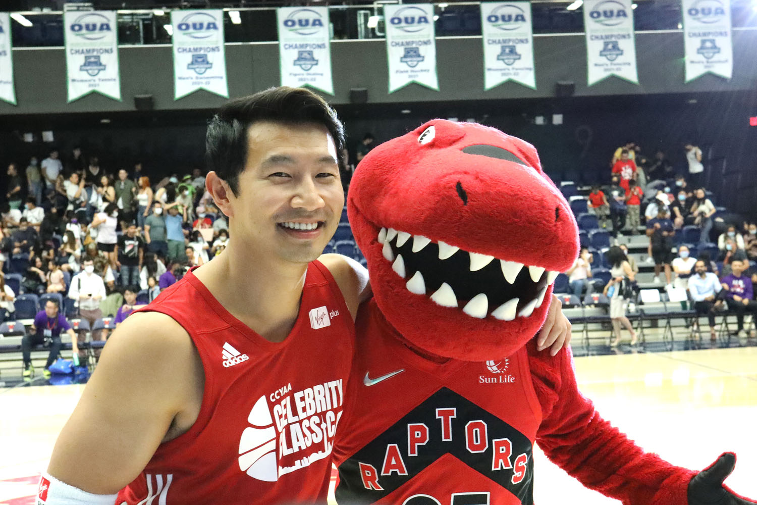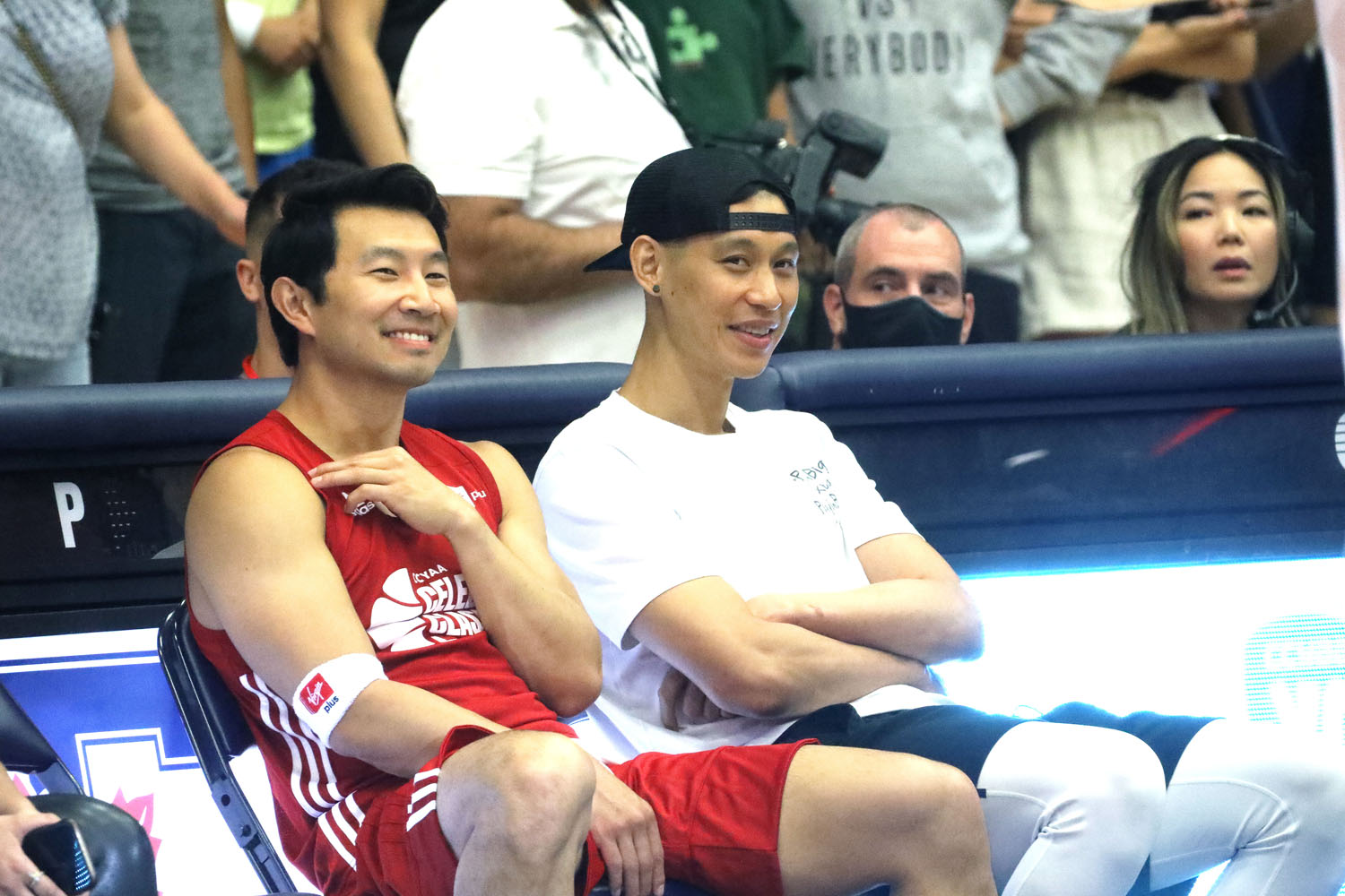 Simu hooked up with Jeremy Lin this weekend to host the first Canadian Chinese Youth Athletic Association Celebrity Classic on Saturday bringing in Asian celebrities from around Canada and beyond including Hasan Minhaj, Ronnie Chieng, Charles Melton, Tesher, Leenda Dong, and more. Dominique Wilkins and Jamaal Magloire were the celebrity coaches and Meng’er Zhang, who co-starred with Simu in Shang-Chi as his sister, also flew in for the event as a spectator. There were a couple of cast members from Bling Empire there too. They showed up because Simu asked them to, and he asked them to in support of the CCYAA and the Jeremy Lin Foundation and also to big up the Asian cultural presence in his hometown. And the community responded.