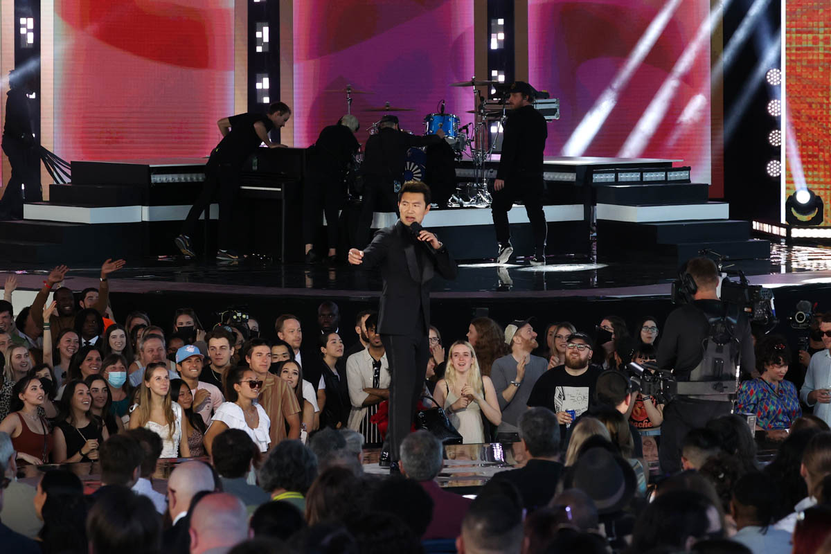 I’m travelling this week so I wasn’t able to watch Simu Liu host the Juno Awards from Toronto on Sunday. I have however watched online clips of his opening monologue and one part where he sings. Let’s start with the monologue which starts with a sketch before he introduces Arkells and then the monologue which becomes an “I am Canadian” speech – his energy is great, he’s willing to make himself the joke, he works in a moment to stand up for reproductive rights, and most importantly, he’s clearly having a great a time. That’s the key, right? The audience doesn’t have a chance of having a great time if the host isn’t having a great time. Even when he’s putting himself on the line and singing, while playing guitar.