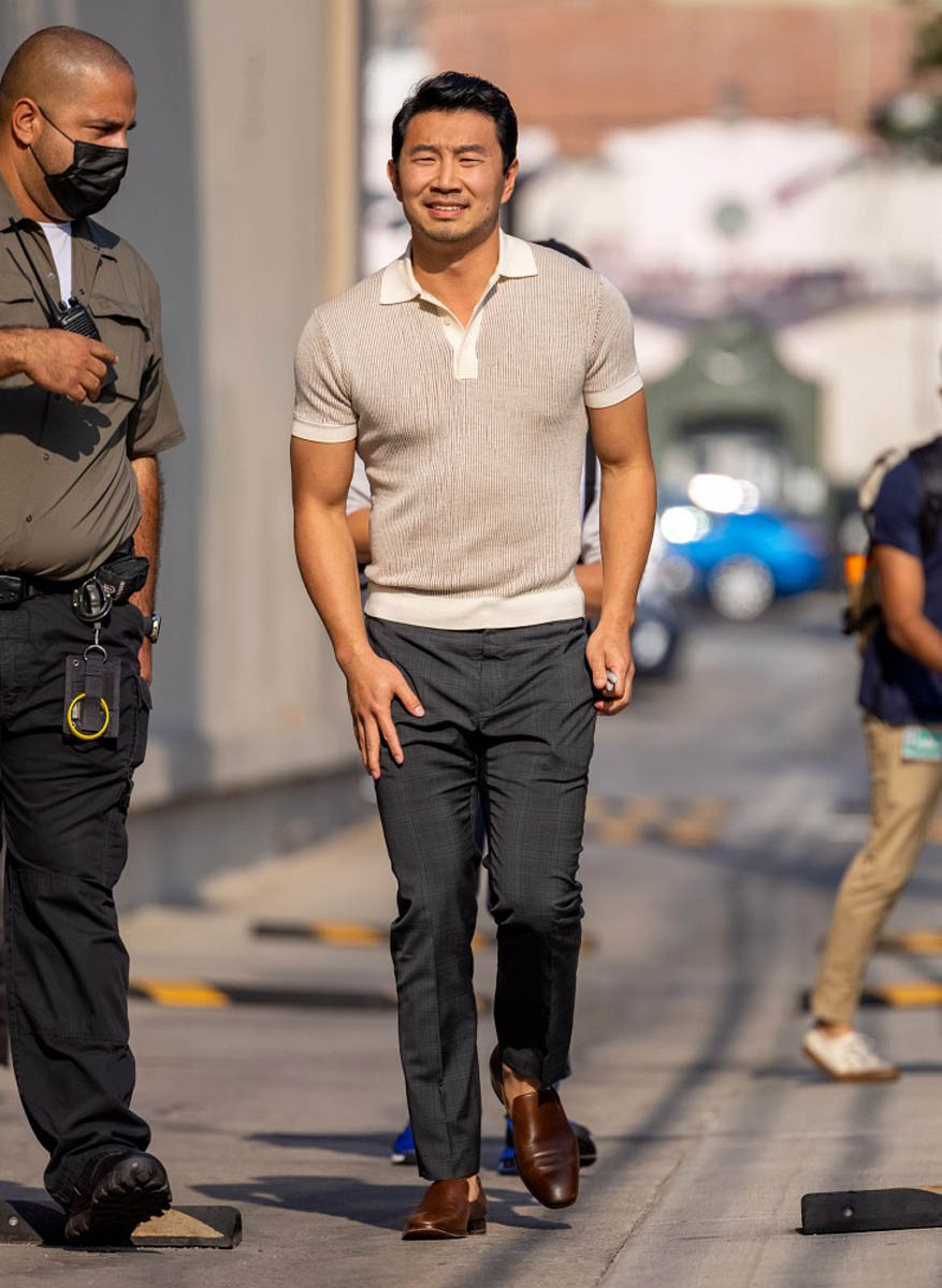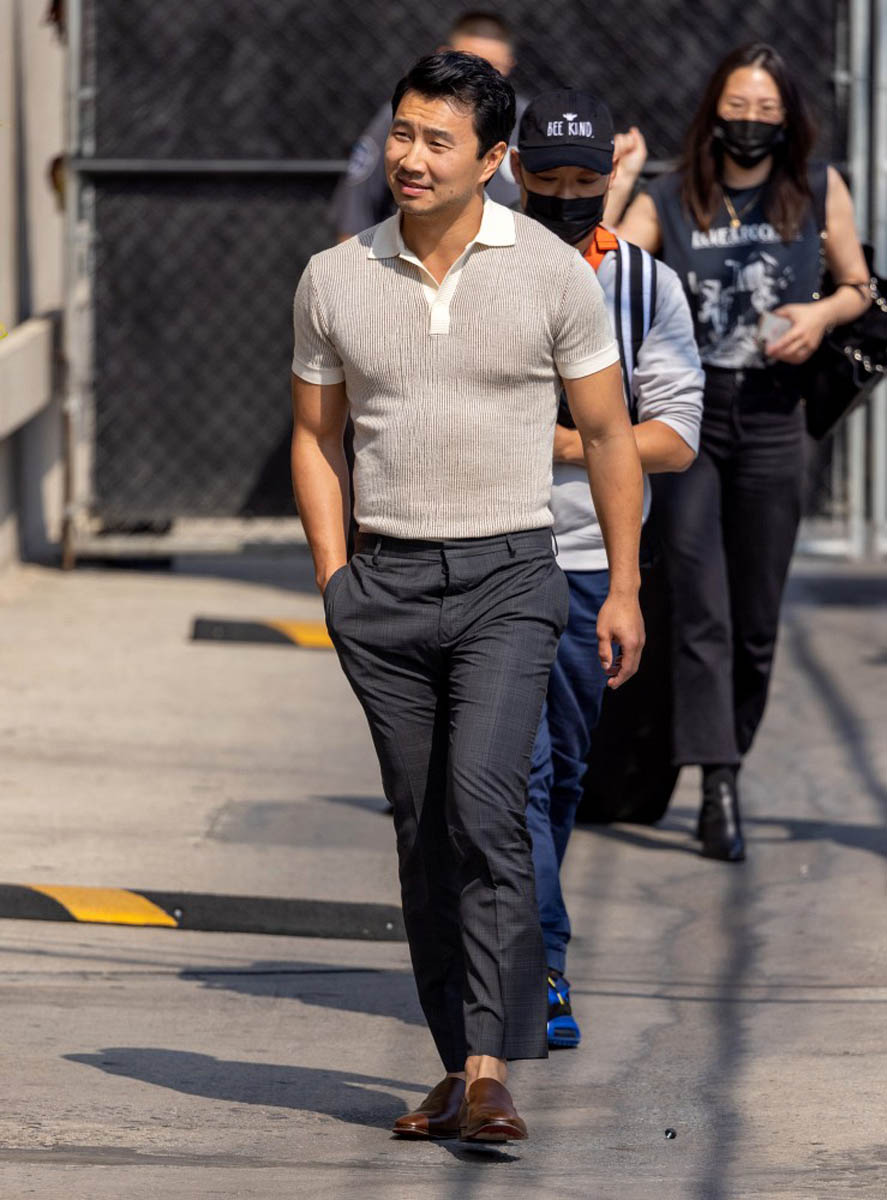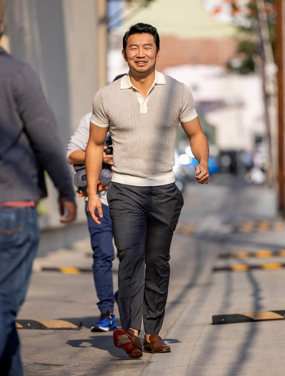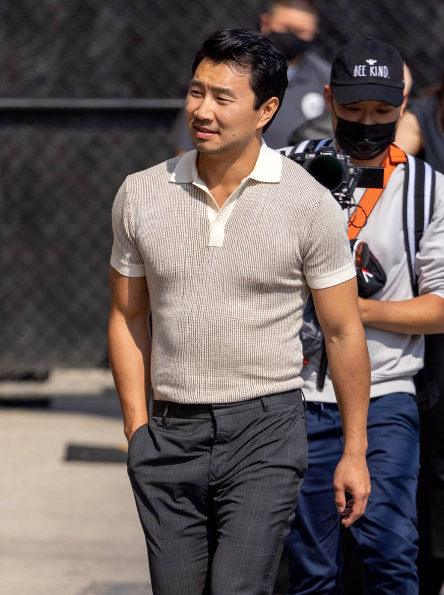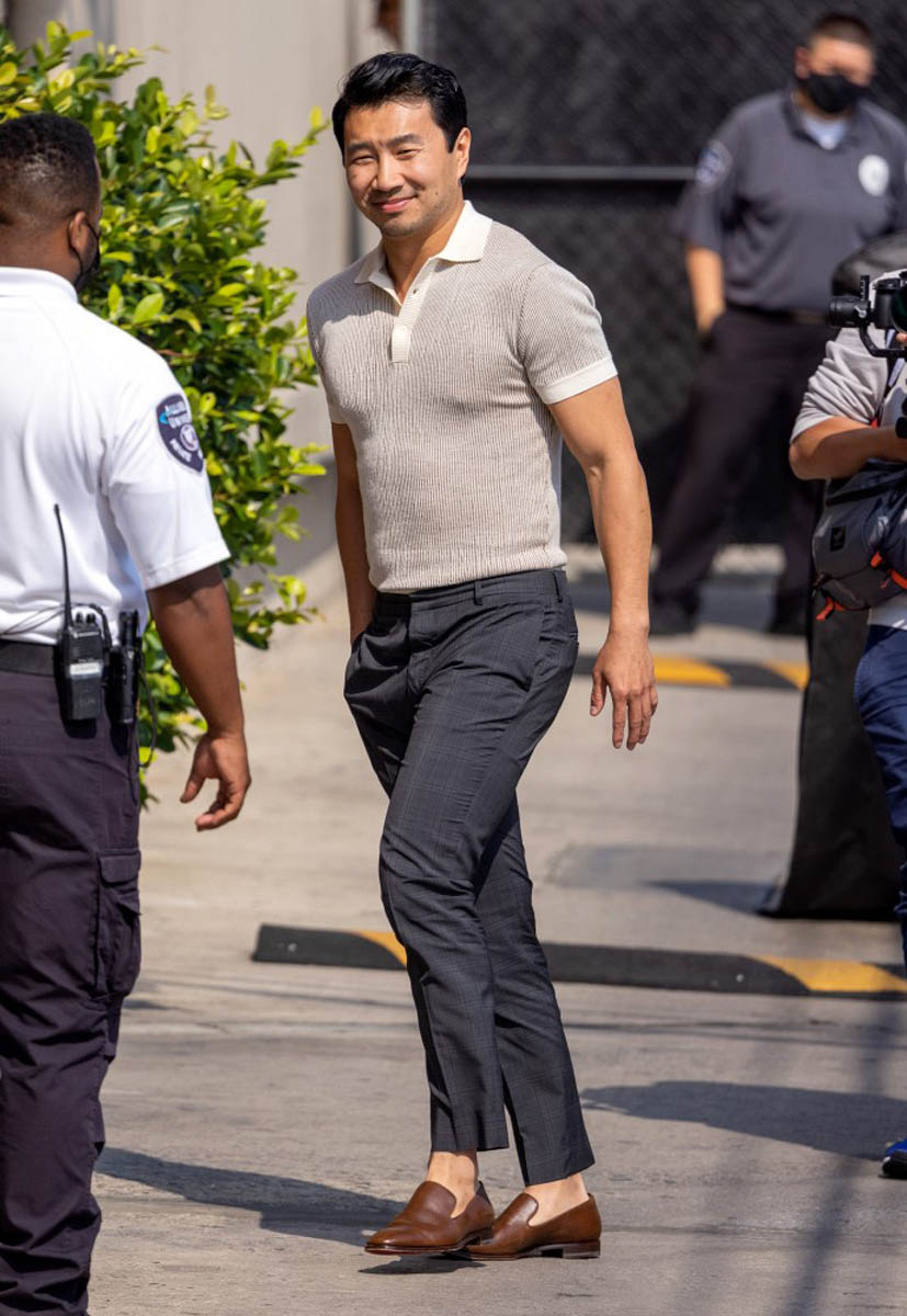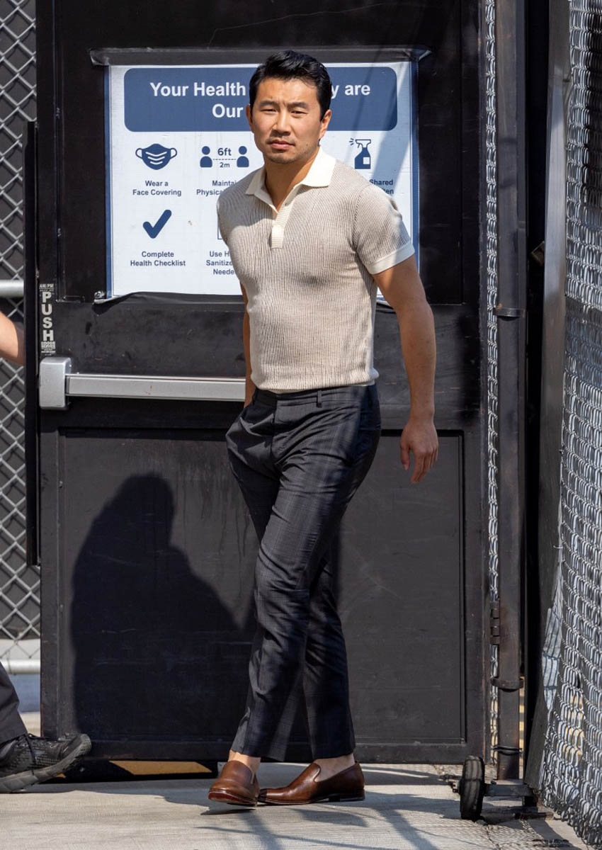 Last night Simu Liu made his first appearance on Jimmy Kimmel Live!, guest-hosted by Sean Hayes. This is going to be a time of firsts for Simu. Earlier this week, at the premiere of Shang-Chi and the Legend of the Ten Rings, that was his first mega red carpet where he was the lead star. So, naturally, during his interview with Sean, he talked about bringing his parents – his very Chinese parents with their expert level “mental gymnastics”, always there to remind their children who made it all possible.