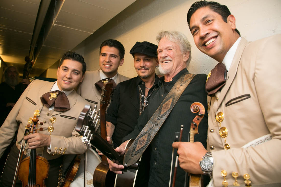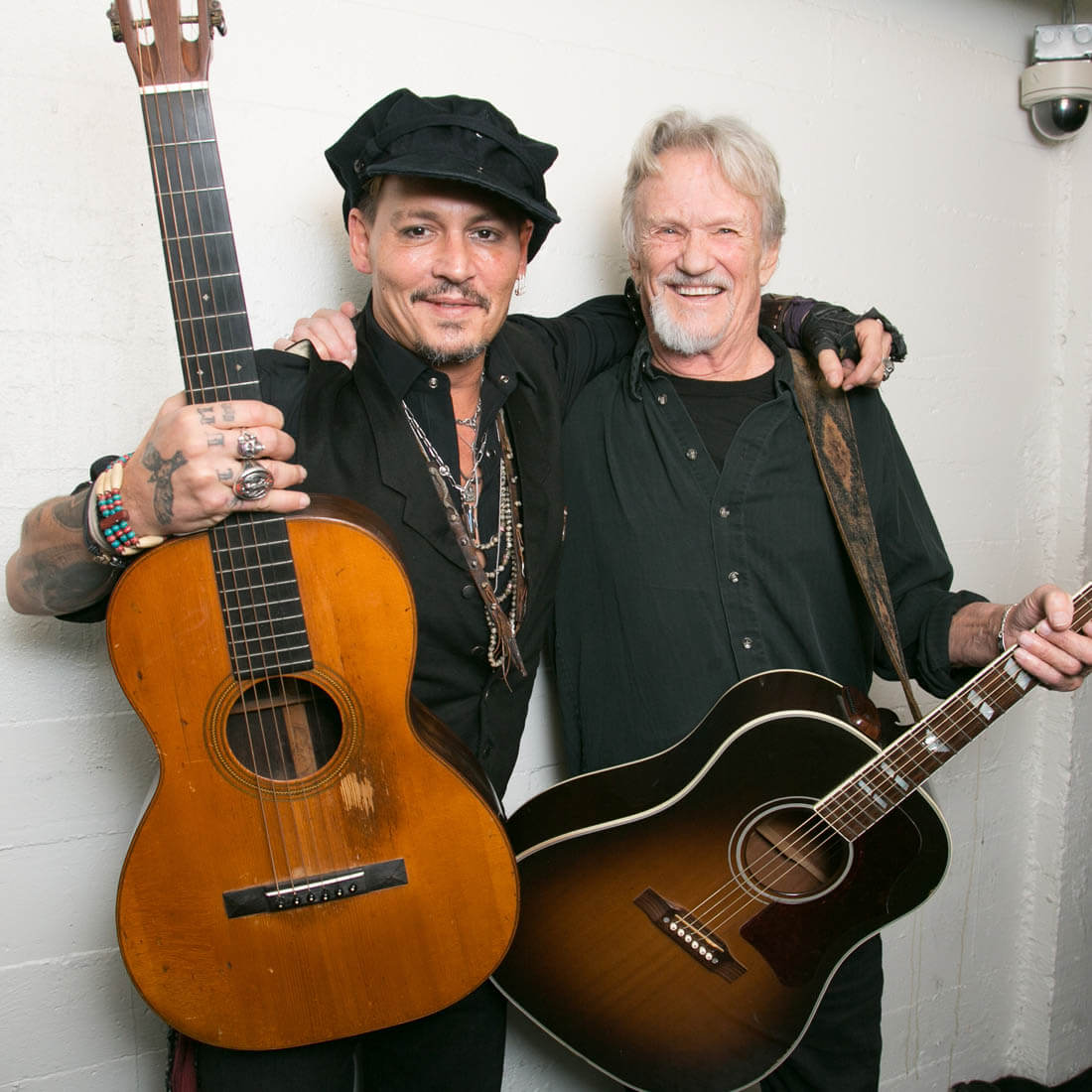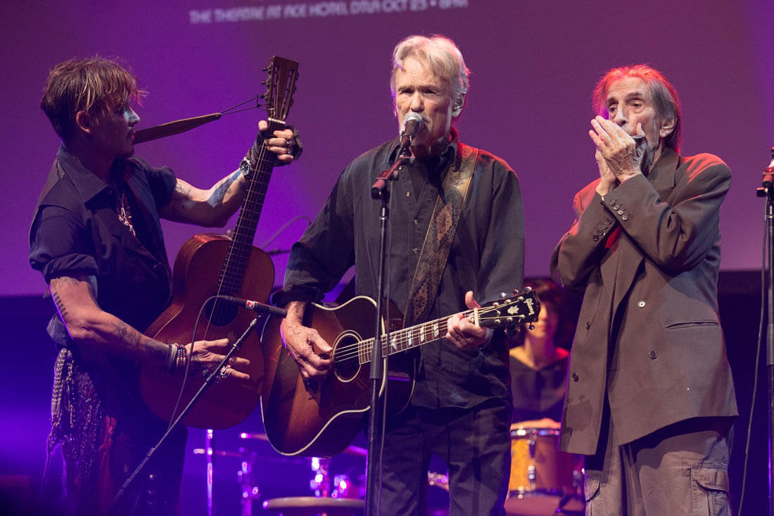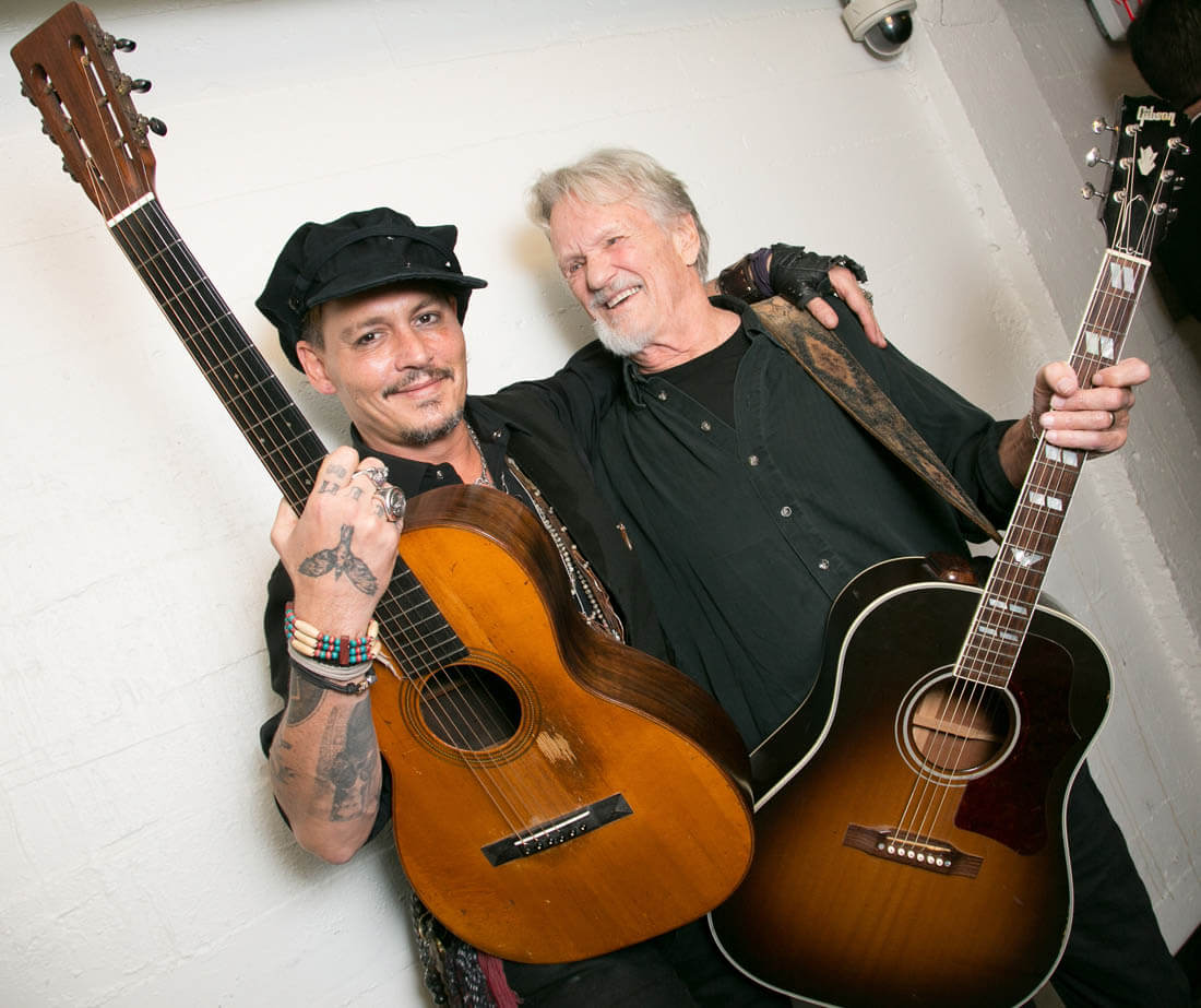 Here’s Johnny last night at the Vidiots Foundation event to honour Harry Dean Stanton. Have you ever been in a group photo and everyone’s trying to organise themselves and someone says, oh, I don’t want to stand next to x or y because they’re younger/thinner/whatever? If this has never been your experience, congratulations, clearly you are more enlightened. Anyway, this is what I thought about looking at these shots of Johnny surrounded by older men. And whether or not he must love this because, well, next to them, maybe in his mind the grossness that has taken over his face and his reputation might not be so obvious. Same applies when he’s with his band, The Hollywood Vampires, and hanging out with Alice Cooper and Joe Perry. You can squint and lie to yourself that this Johnny is still the one you remember. The moment he has to pose with, say, someone who is as pretty now as he used to be though, like beautiful Brenton Thwaites, the young actor in the new Pirates movie with him, the truth becomes harder to ignore.