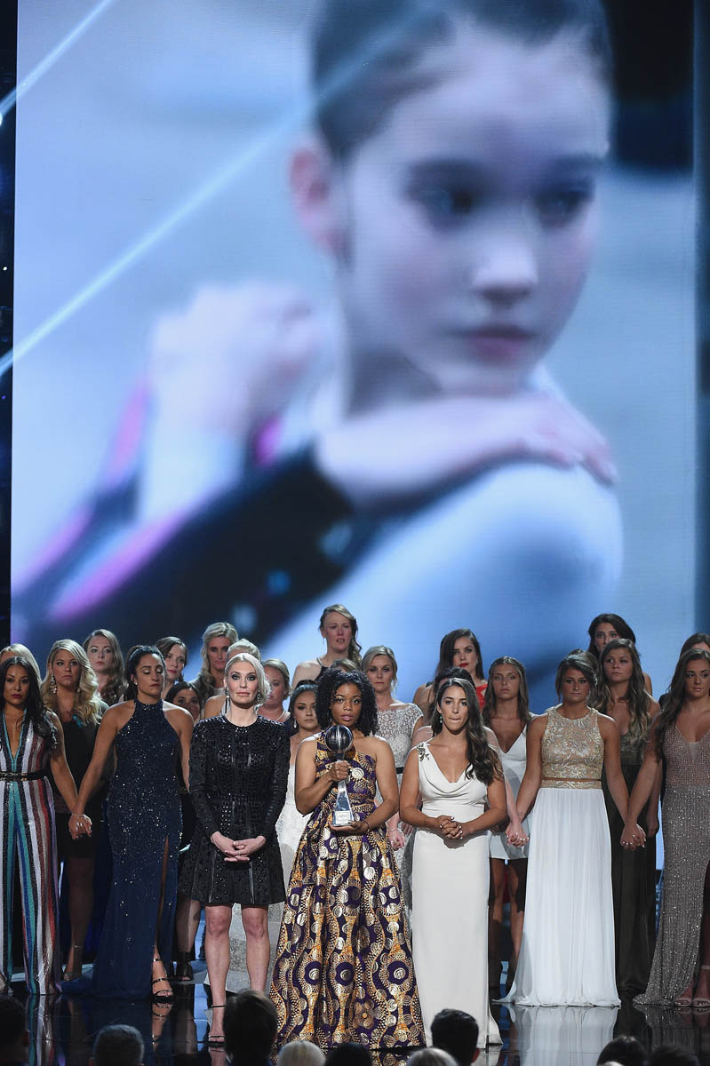 The Arthur Ashe Courage Award was presented last night at the ESPYs to 141 “sister survivors” who came forward, who pushed back, who refused to accept that their trauma wasn’t valid and that their pain was an insignificant by-product in the pursuit of the only goals: “medals and reputation”.