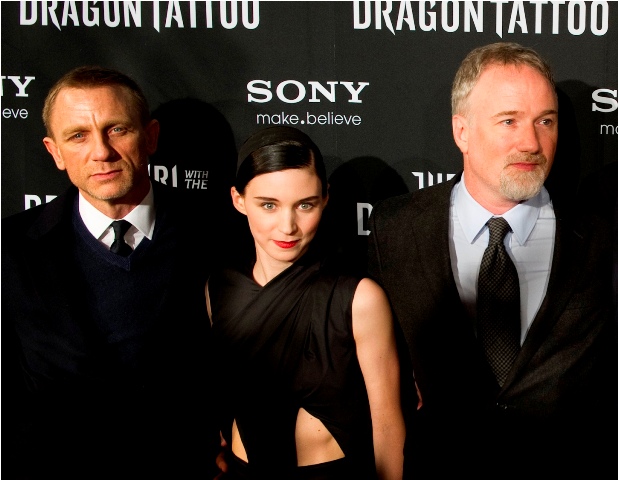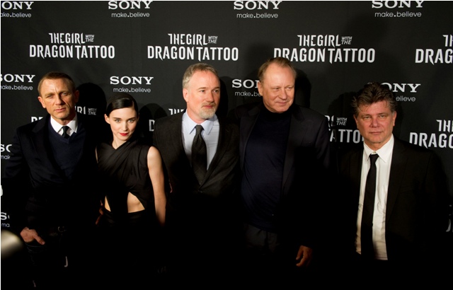 Attached - Rooney and her creator David Fincher with Daniel Craig in Sweden at the premiere of The Girl With The Dragon Tattoo.