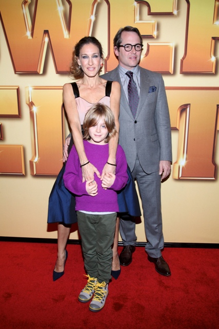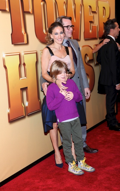 Every night I check the photo agencies before I head to bed, just to get a sense of what I might want to include on the blog the next day. When I saw these shots of Sarah Jessica Parker and Matthew Broderick with their son James Wilkie at the Tower Heist premiere last night, I thought to myself - Tower Heist is for kids? Because normally that’s when they bring him to these events.
