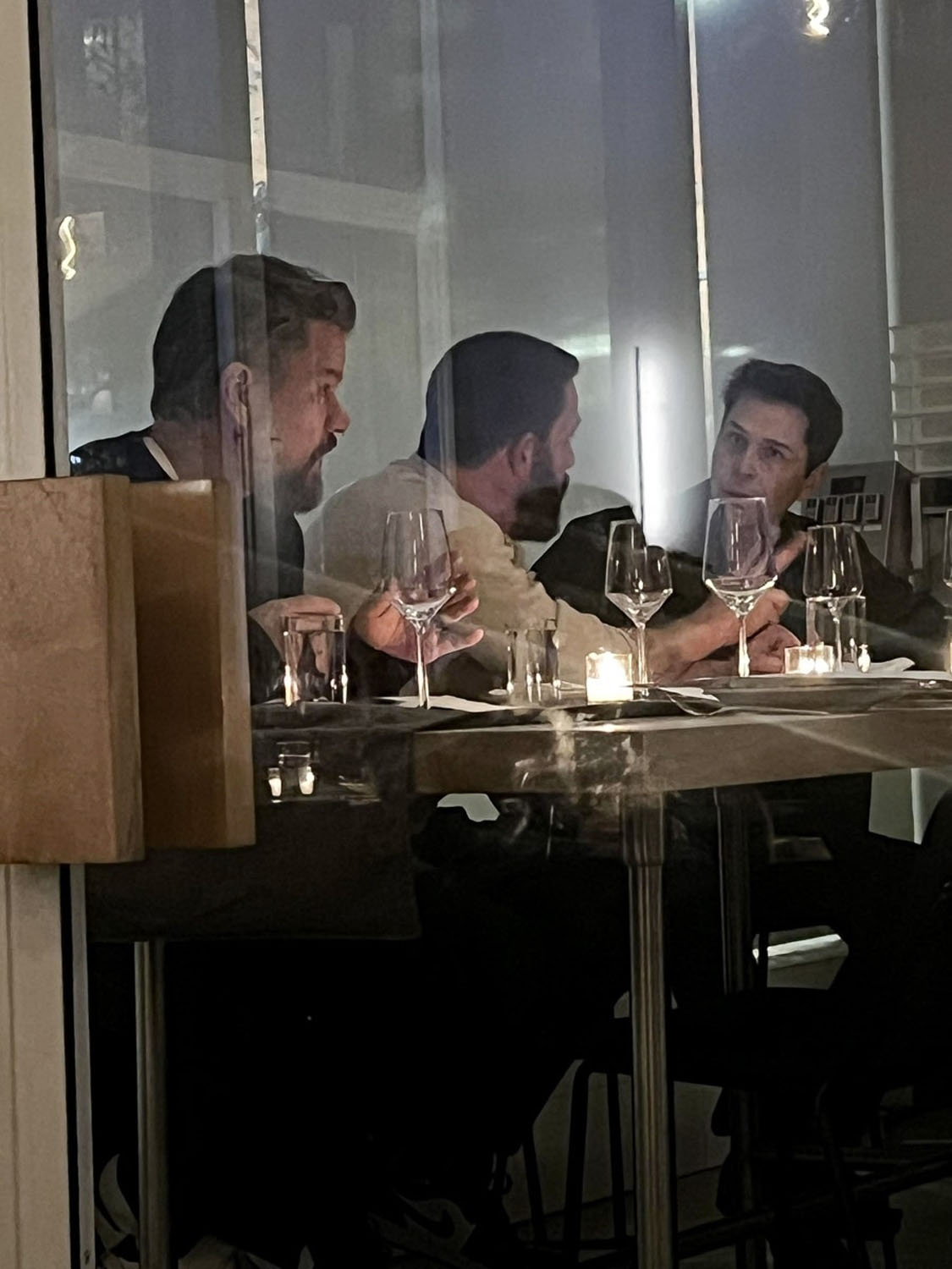 Here they are out for dinner last night in New York, a little club of Boston bros who hold or have held the title of Sexiest Man Alive…for a welcome celebration/initiation? I’m kidding, I don’t actually believe they’d have a tradition like this although I think they should, like the Saturday Night Live Five Timers Club, with a jacket in the Red Sox colours and the SMA letters with something obnoxiously corny like: