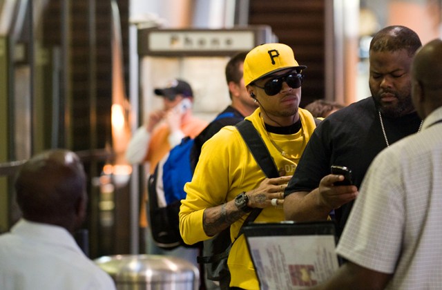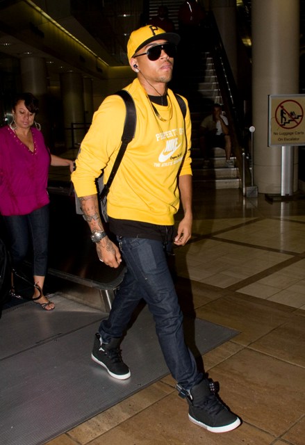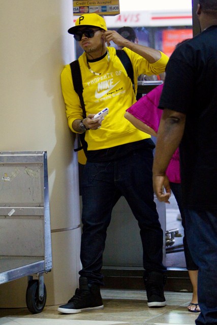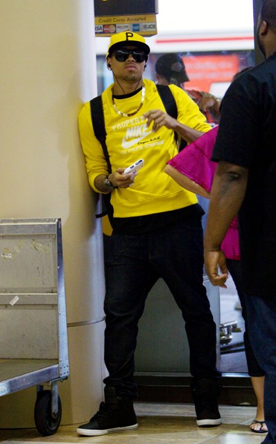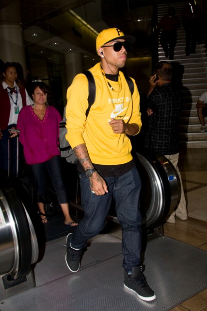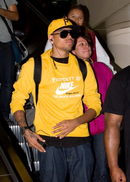 It’s Chris Brown at LAX arriving for sentencing today – just a formality, the deal was made weeks ago. He won’t do any time, and community service will be his official punishment. Awesome.