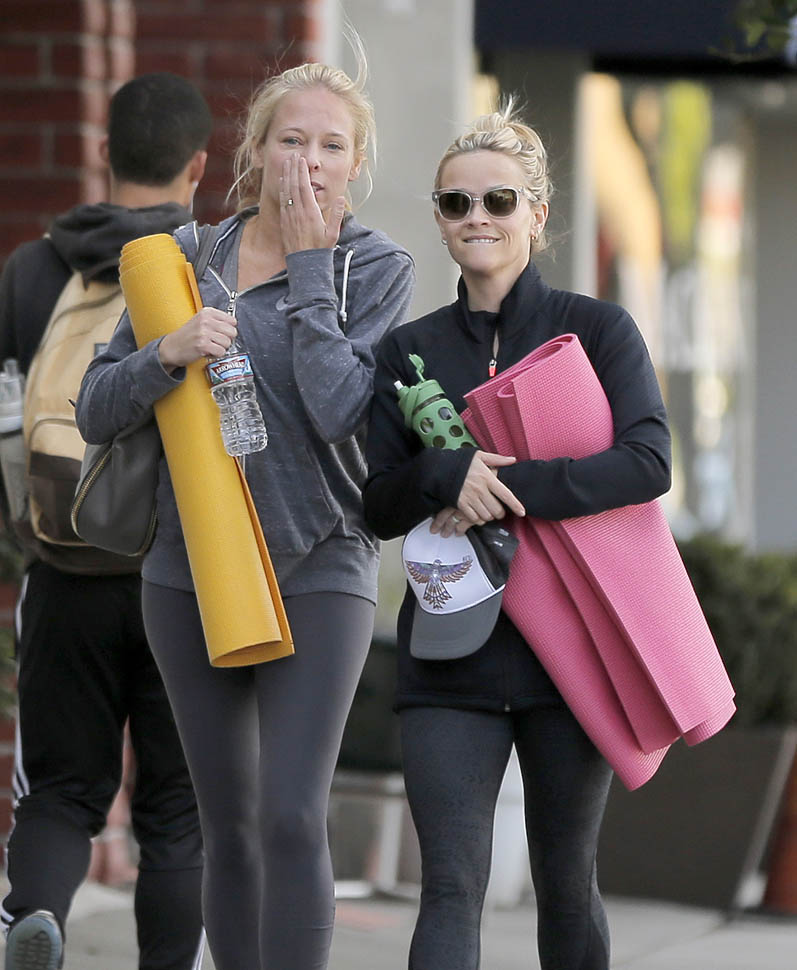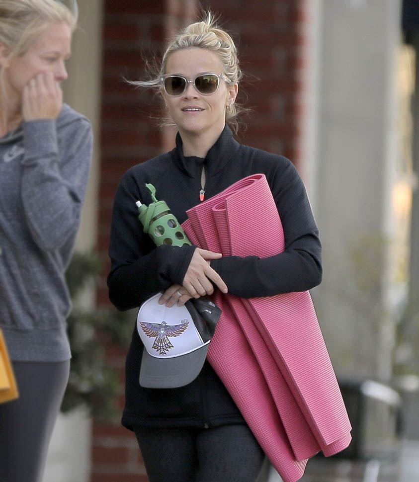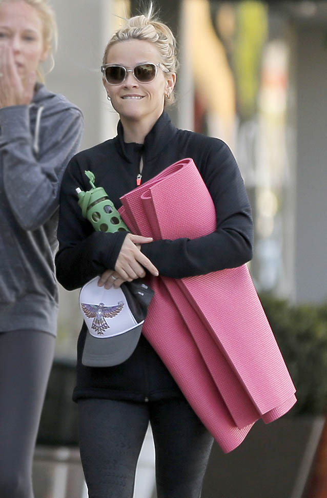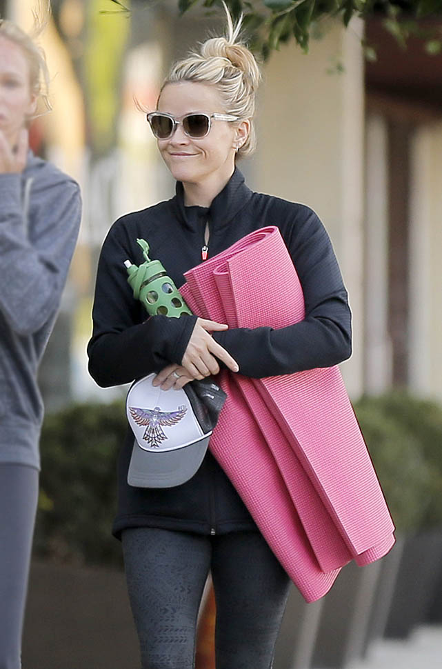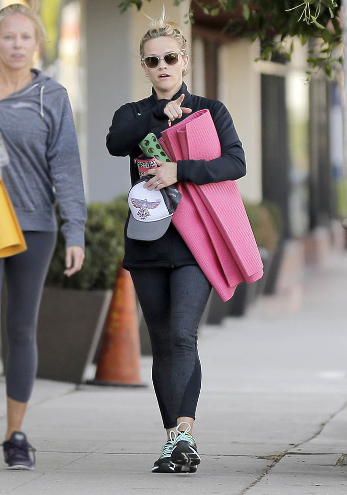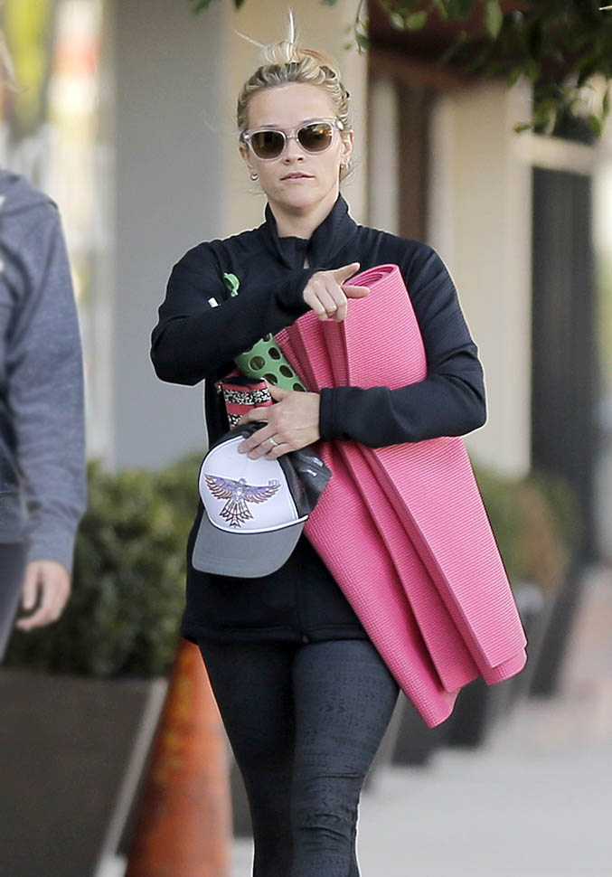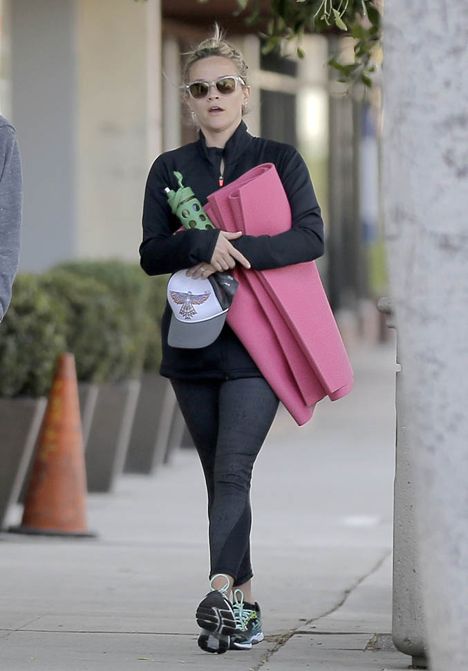 Attached - Reese Witherspoon heading to a yoga class today in Brentwood.