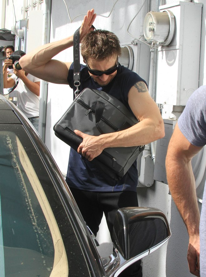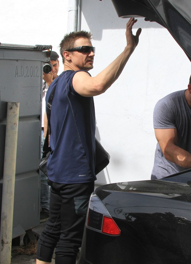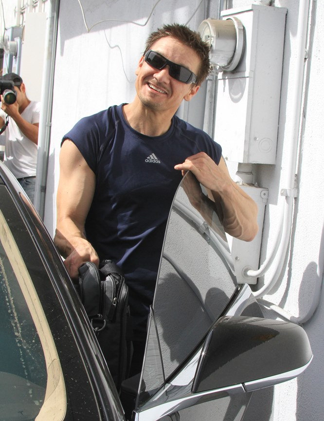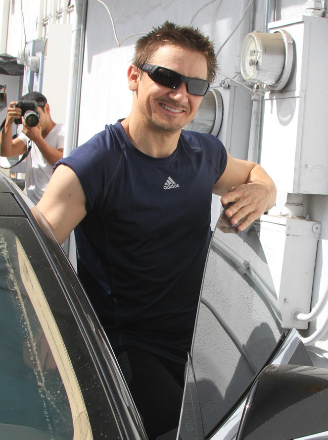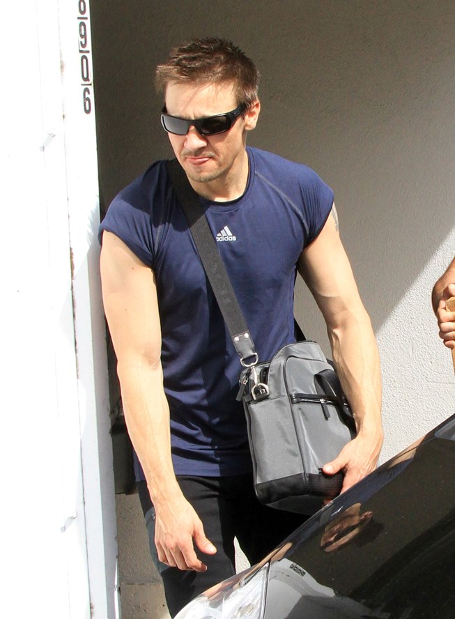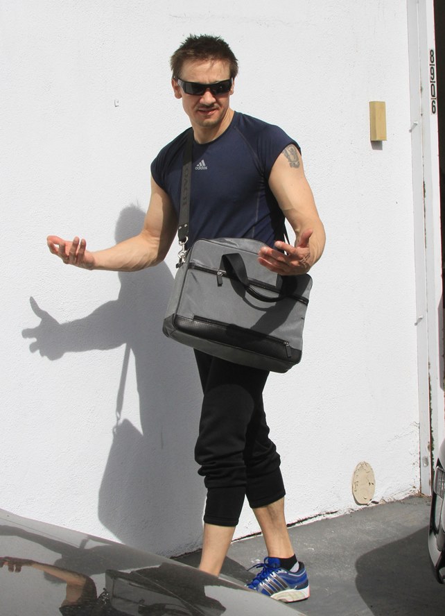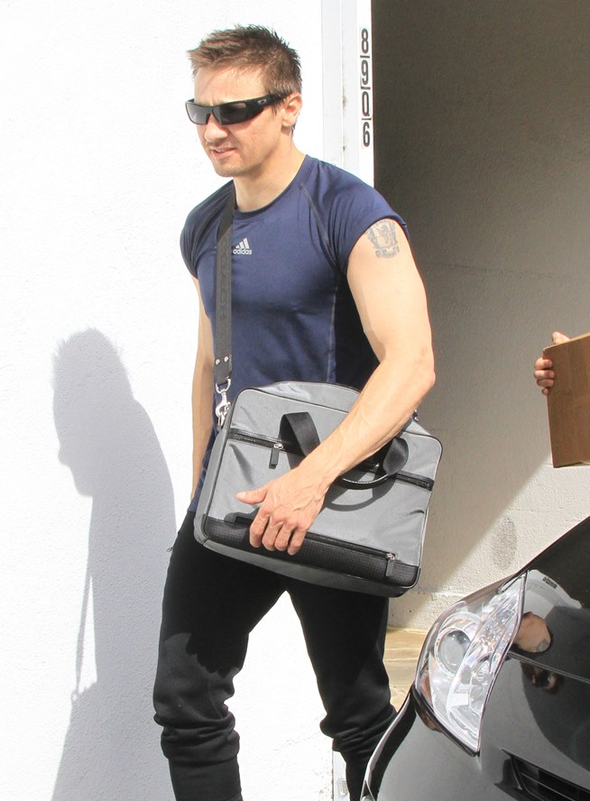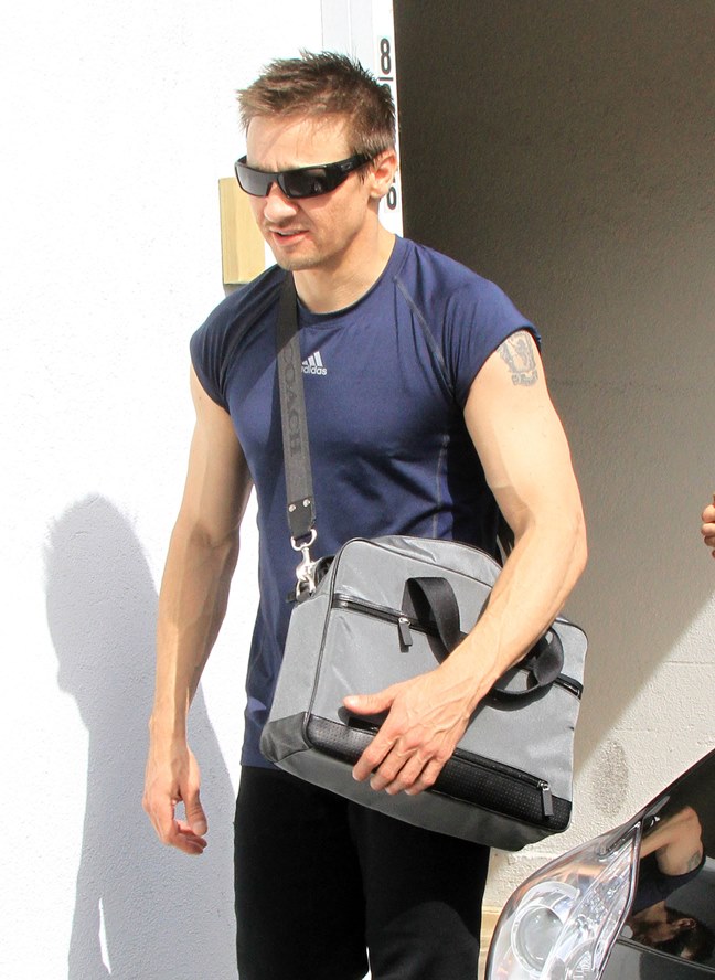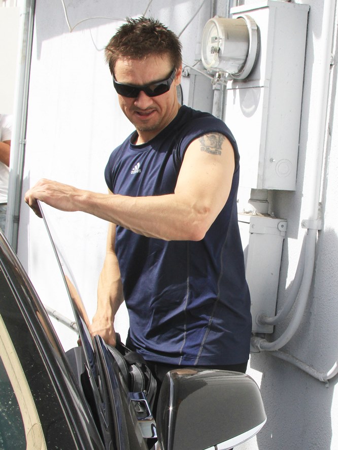 Attached – Jeremy Renner gets in a workout before the Oscars.