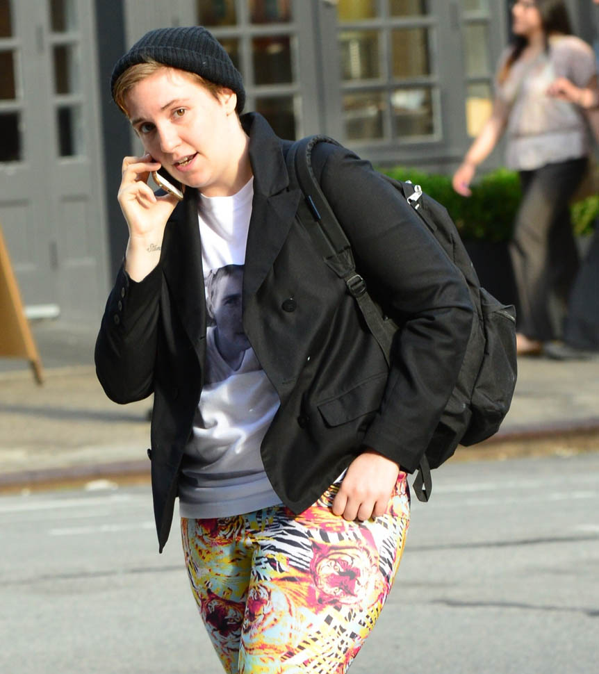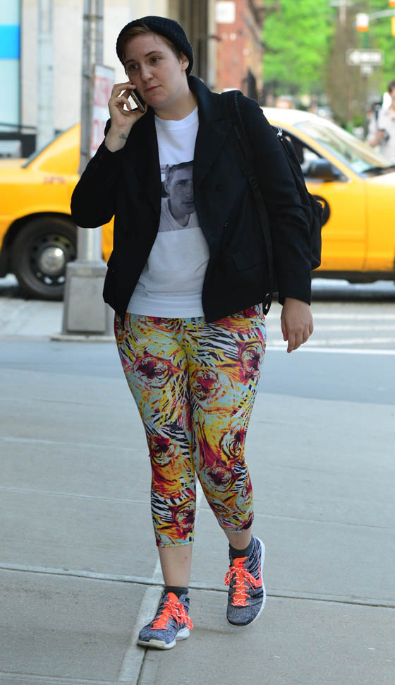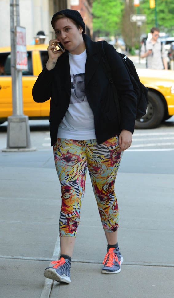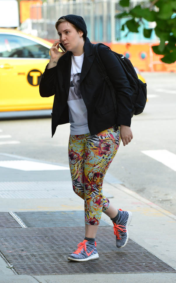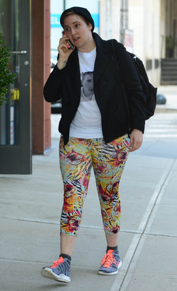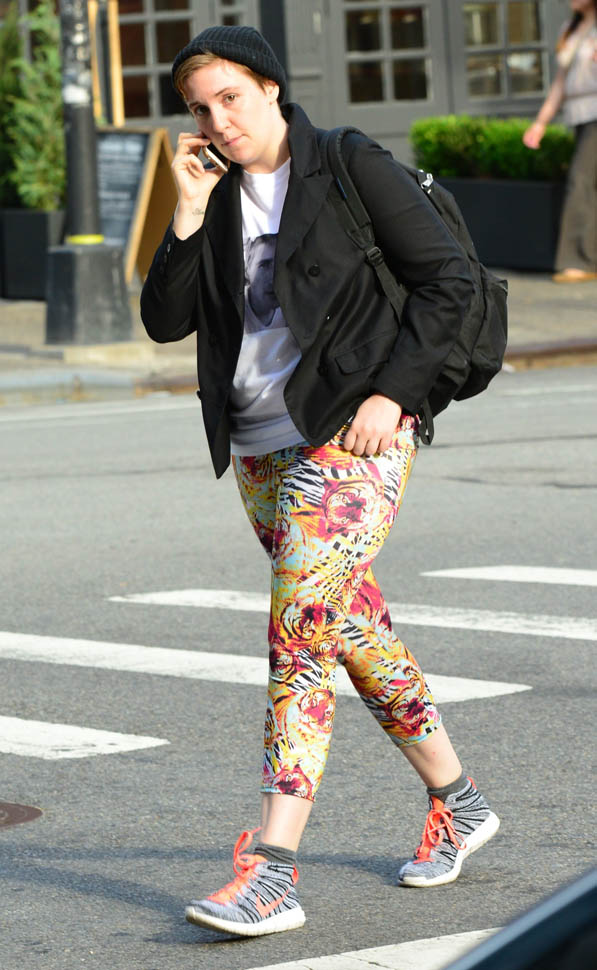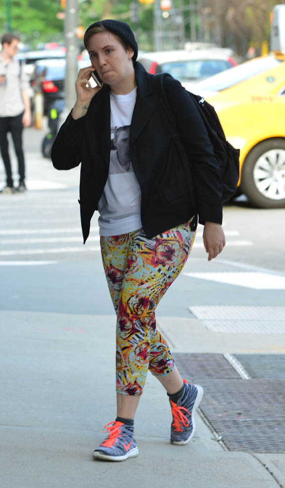 Attached - Lena Dunham heading to the gym in New York the other day.