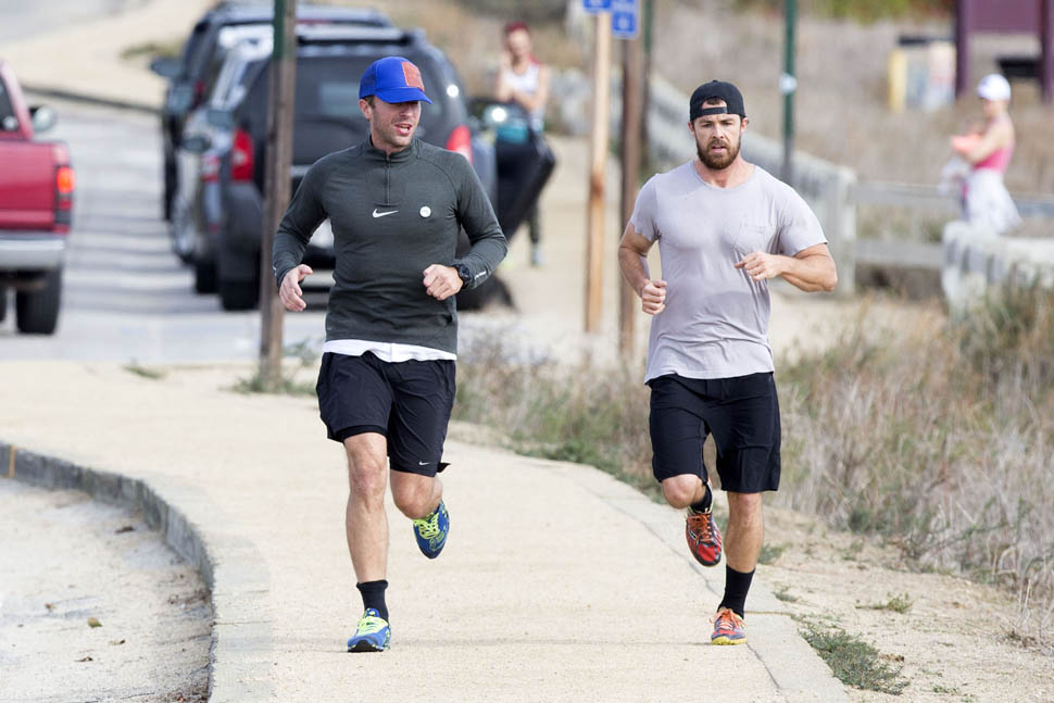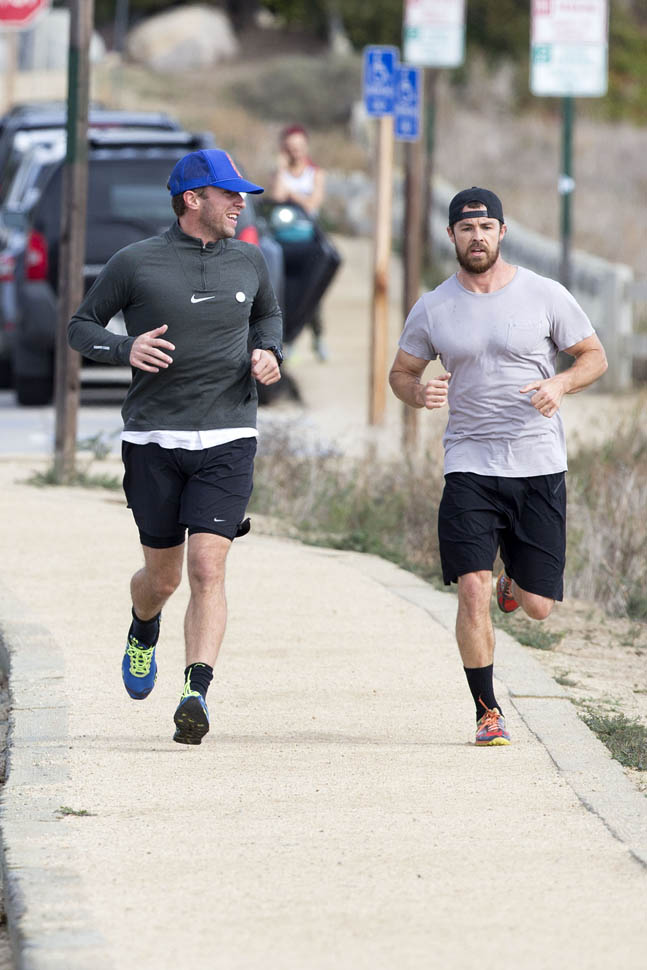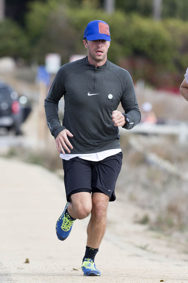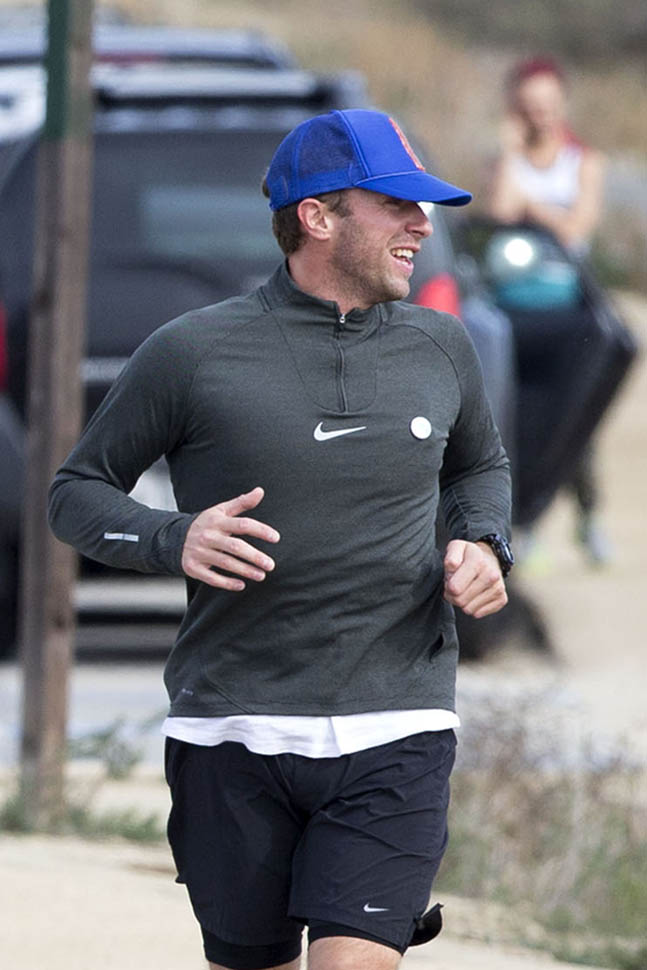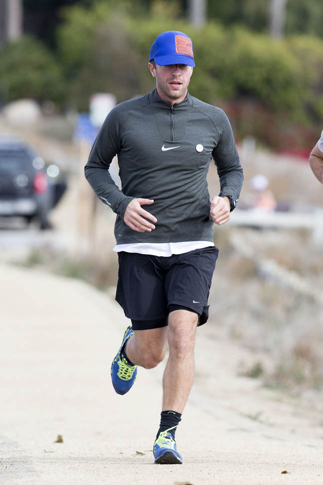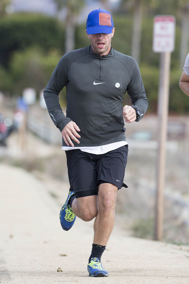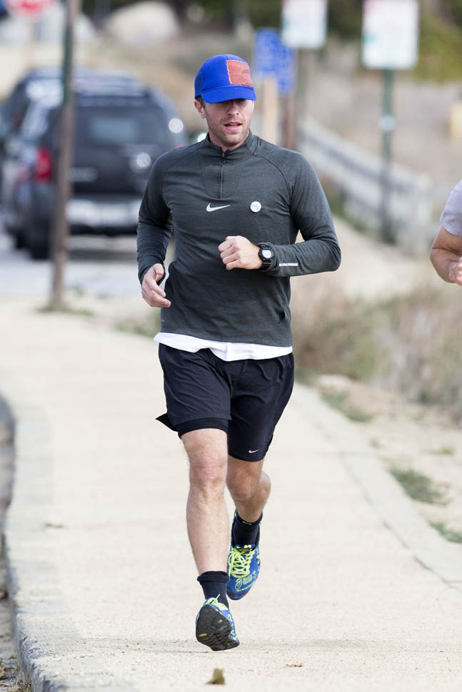 Attached - Chris Martin out for a jog in Malibu on Monday.