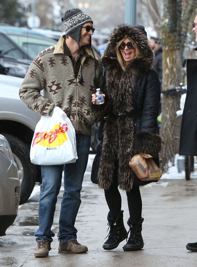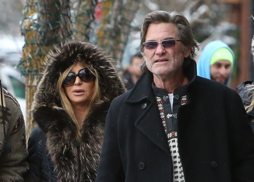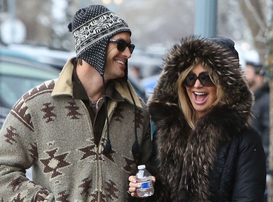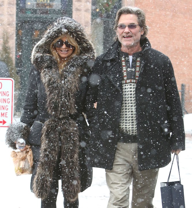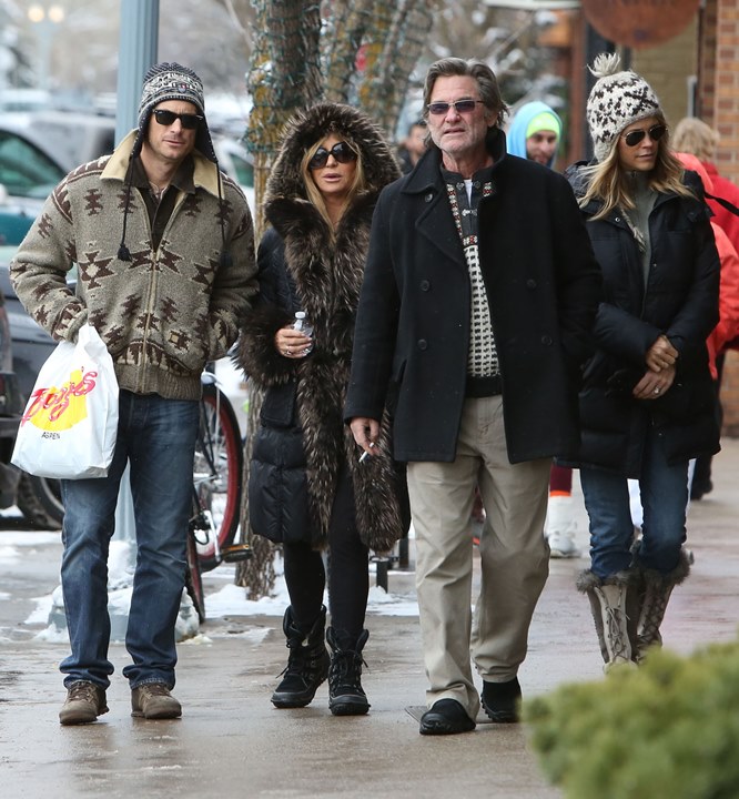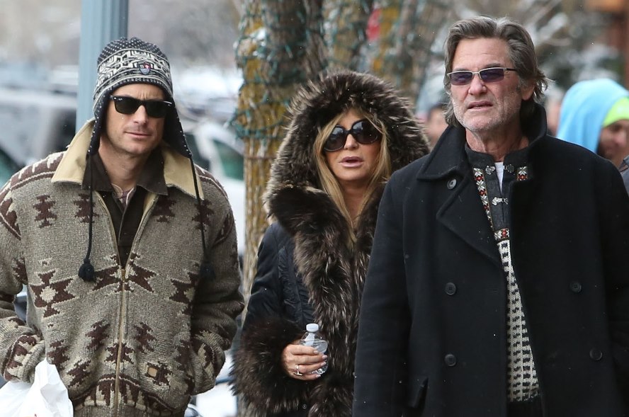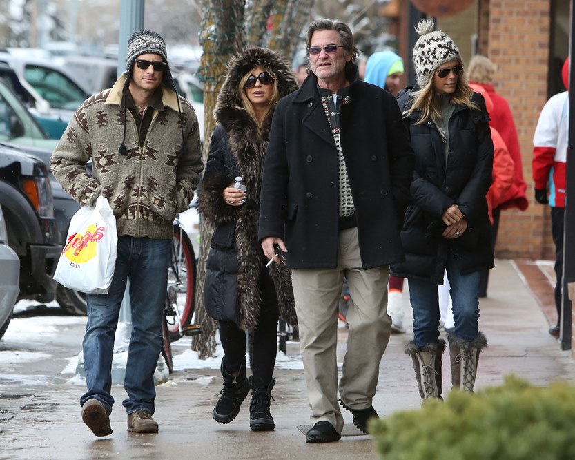 Attached – Goldie Hawn and Kurt Russell go for a family walk in Aspen.