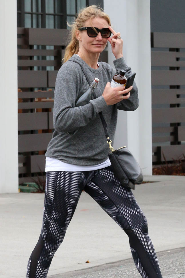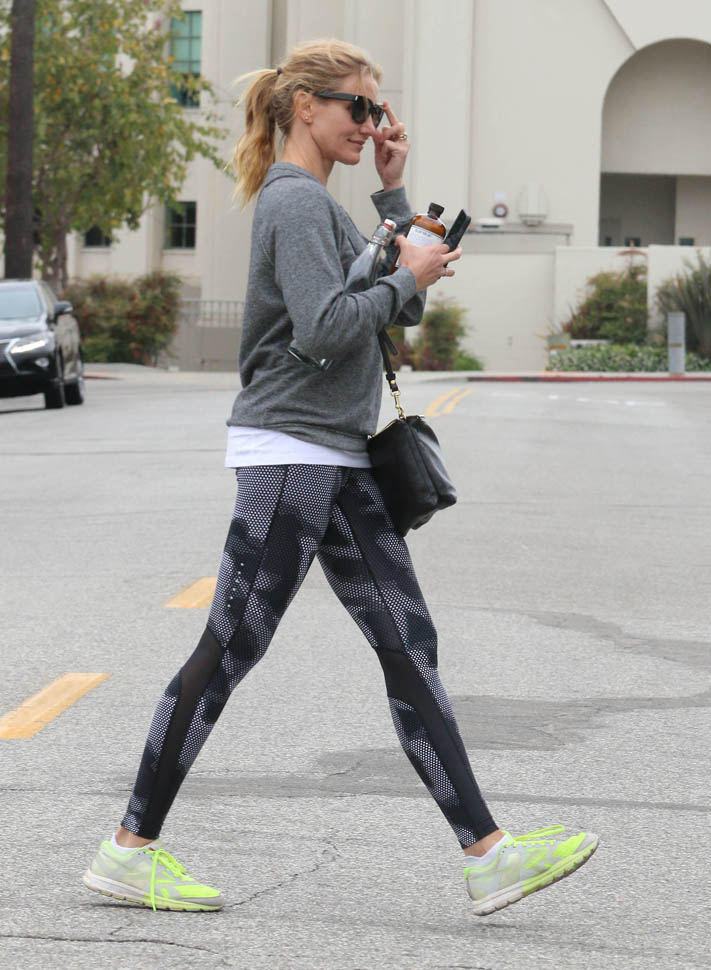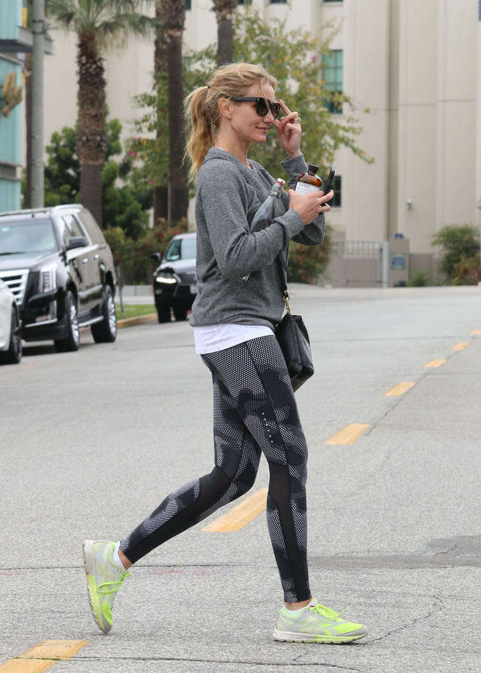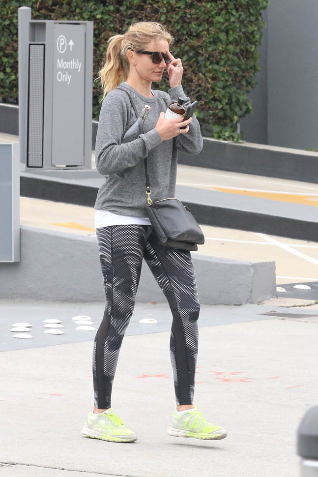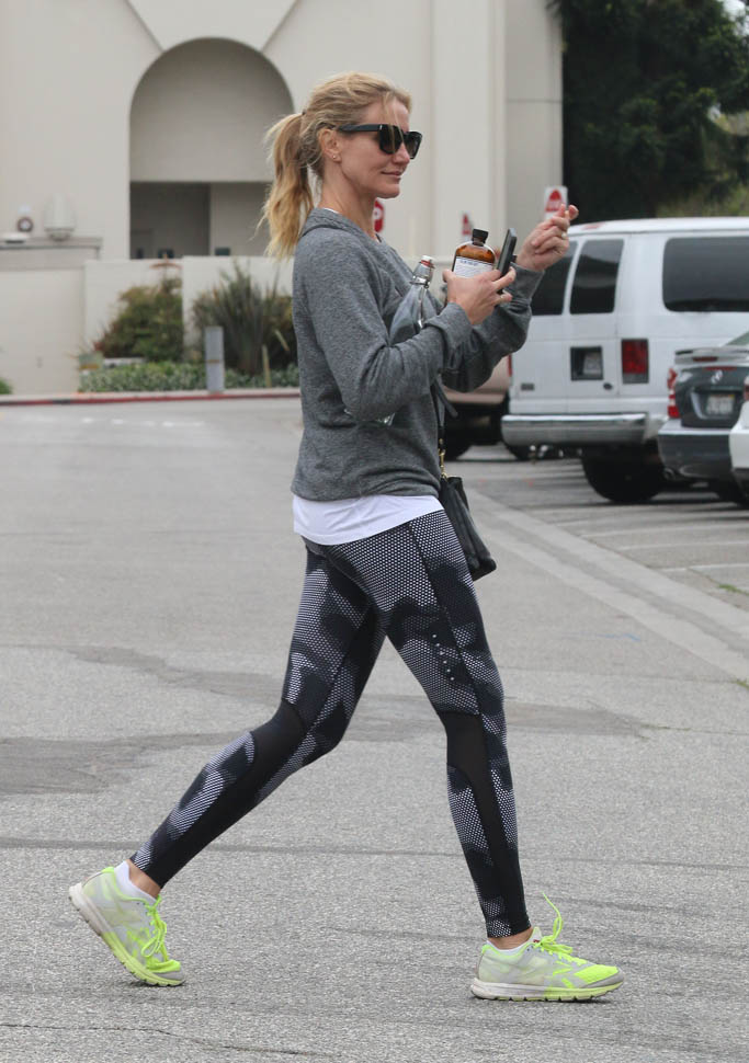 Attached - Cameron Diaz heading to the gym yesterday in LA.