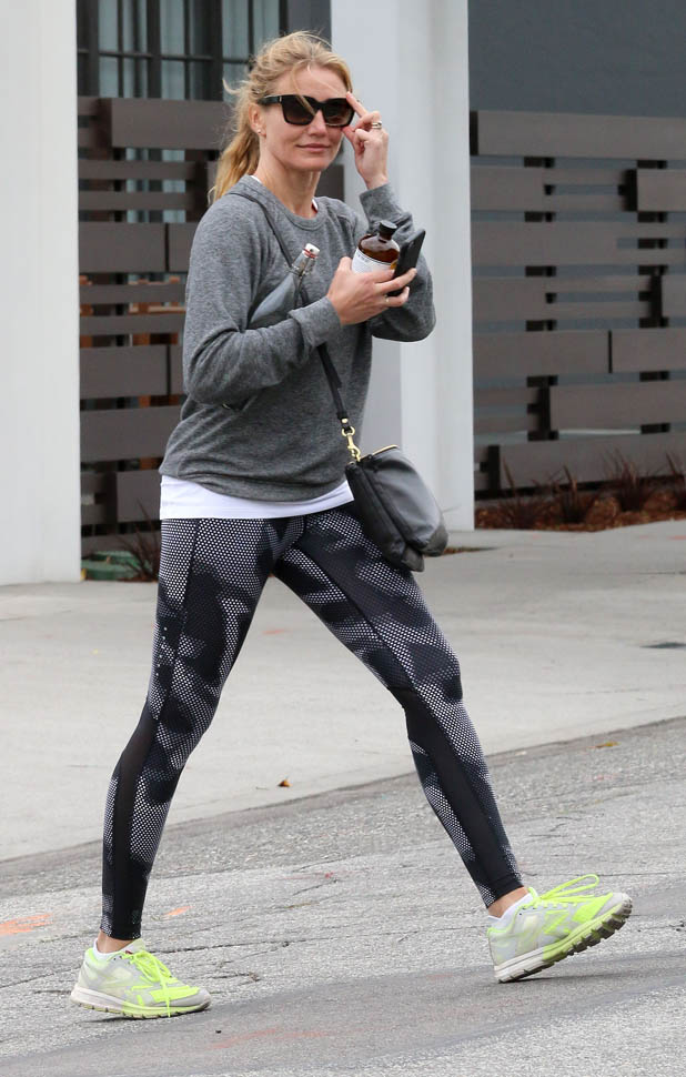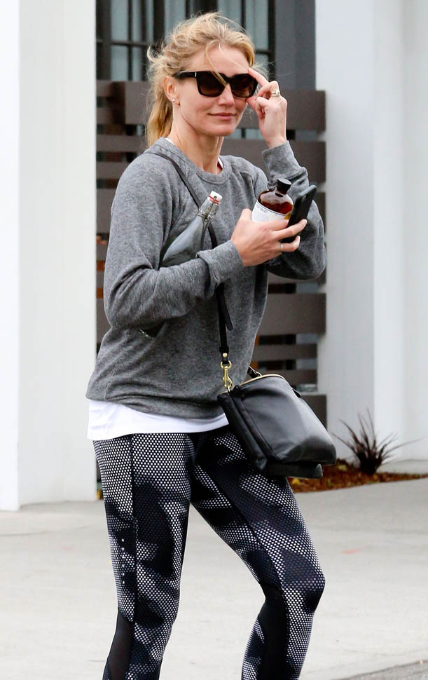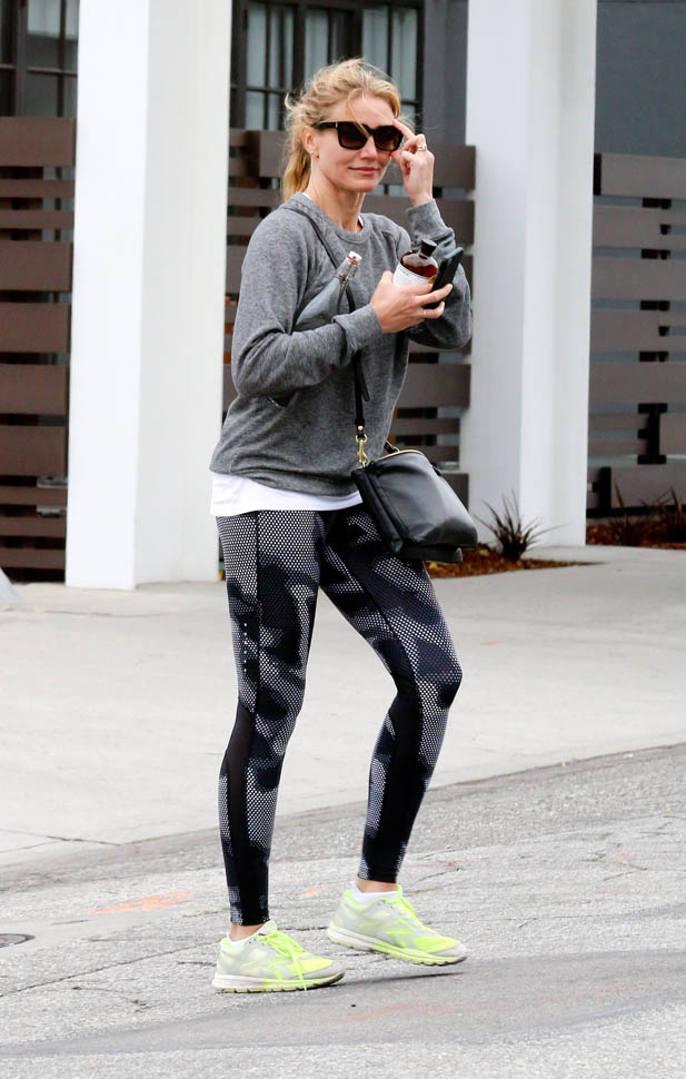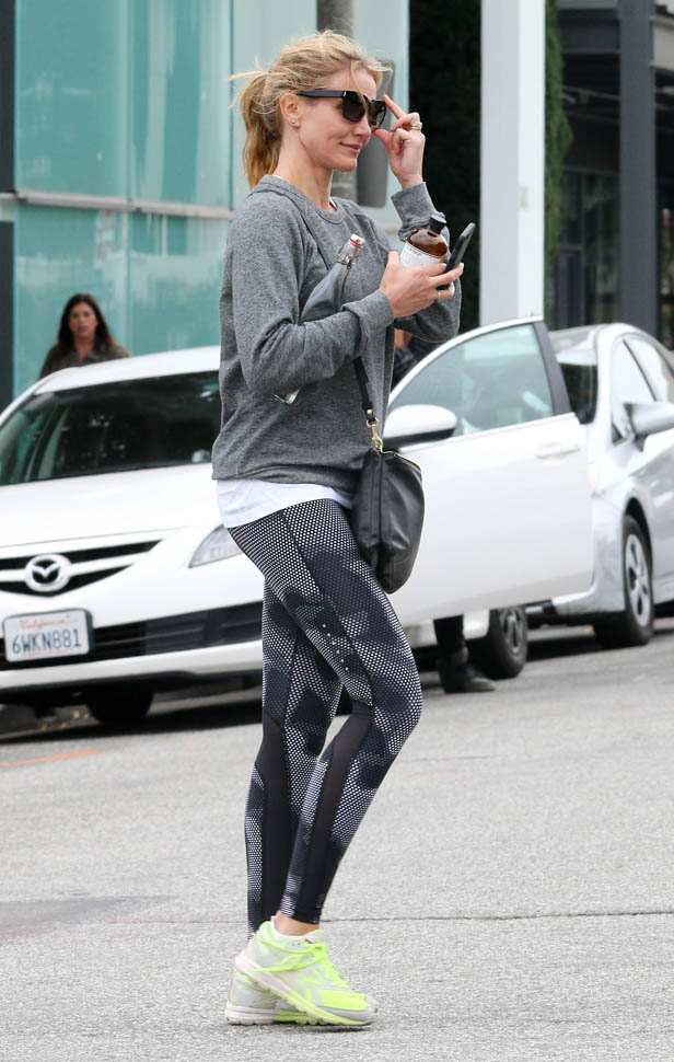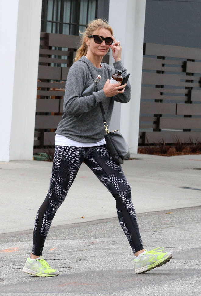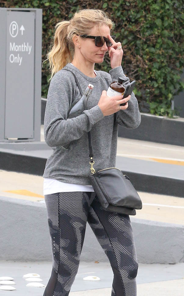 Attached - Cameron Diaz heading to the gym yesterday in LA.