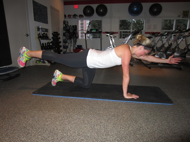 This one is my favourite, and it is way harder than it looks. Start on all fours making sure your shoulders are directly over your hands and your hips directly over your knees. Extend out 1 arm and the opposite leg and hold yourself still like a statue, ensuring that your spine remains stable. You want to stabilize your body through your core muscles, not by bracing with your hand and knee. Hold this position for 30 seconds, trying to keep your body as long as possible, then repeat on the other side. Start with 1 set of 30 seconds on each side and work up to 2 or 3 sets.