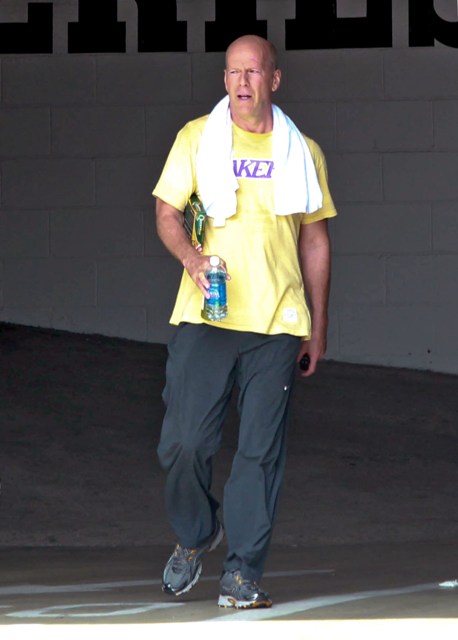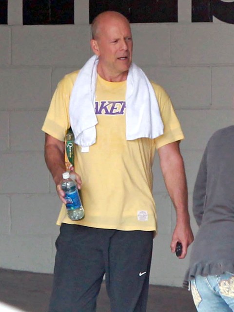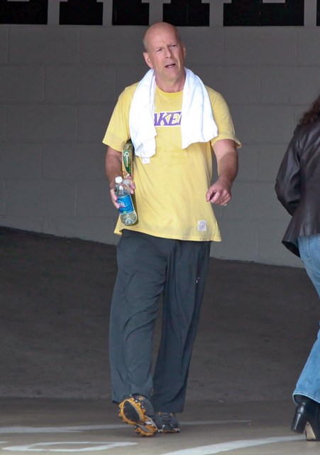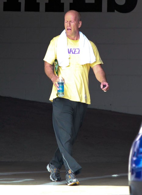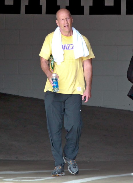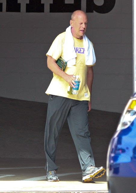 Attached - Bruce Willis leaving the gym yesterday.