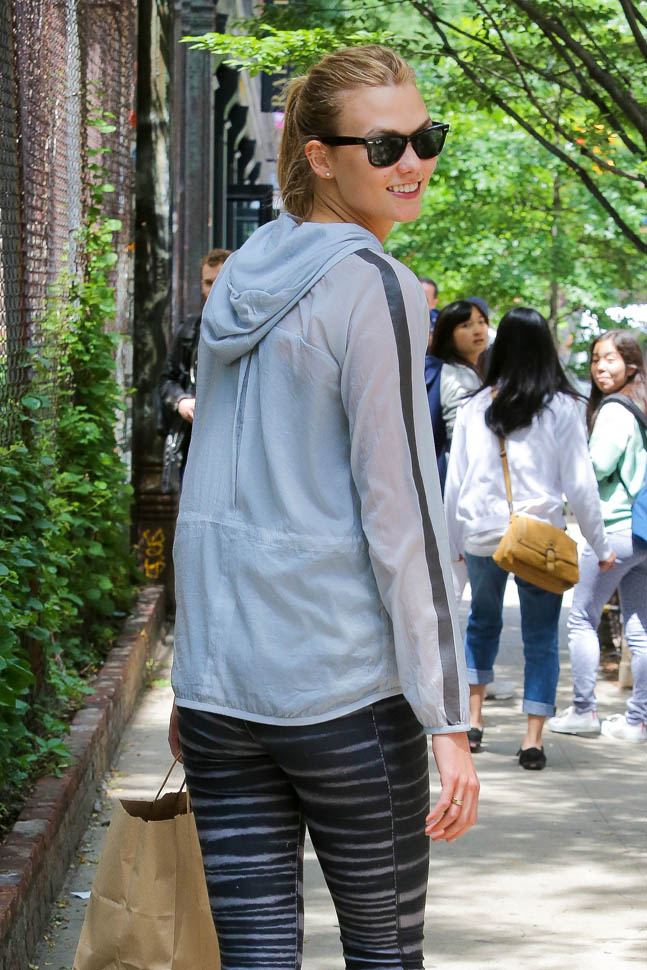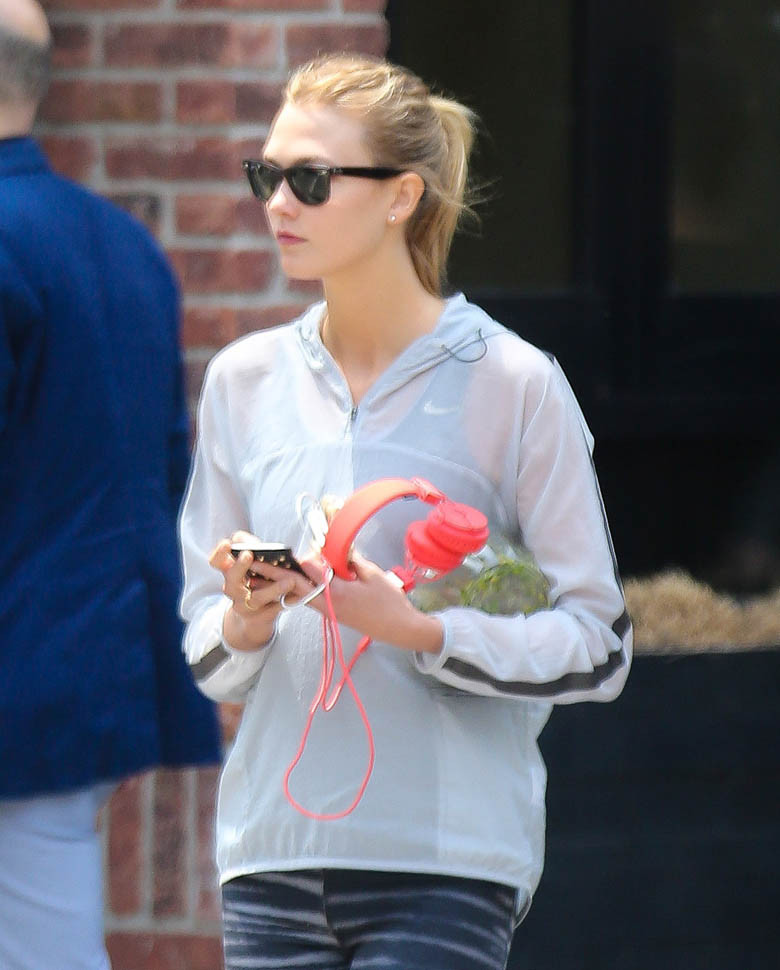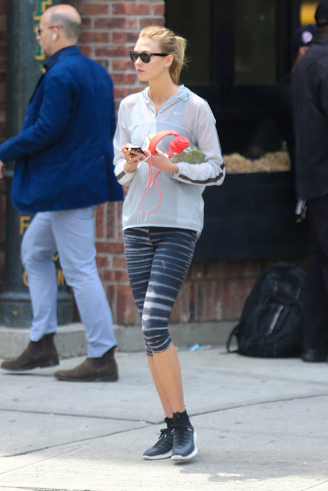 Attached- Karlie Kloss leaving the gym yesterday in New York.