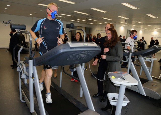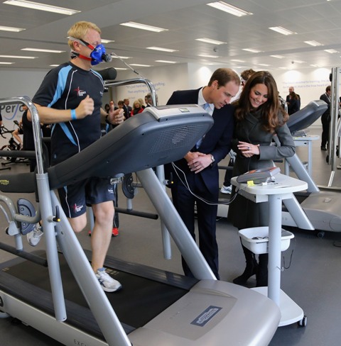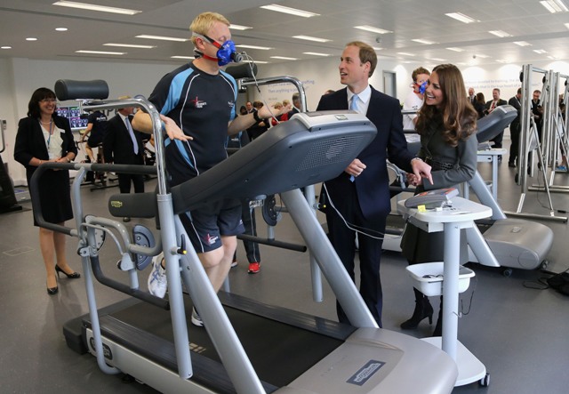 Attached - Will and Kate visiting the new gym at St George’s Park yesterday in London.
