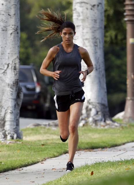 Attached - Jennifer Carpenter out for a run yesterday.