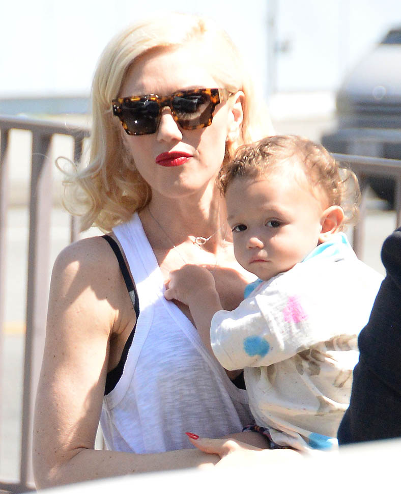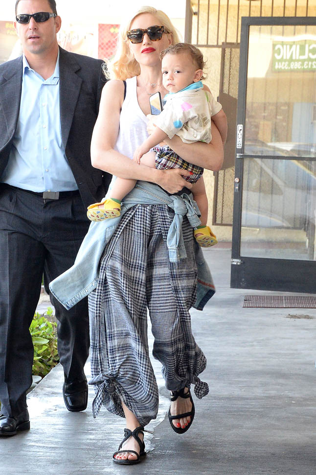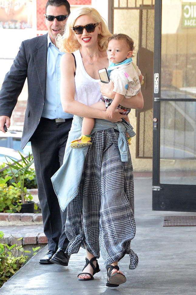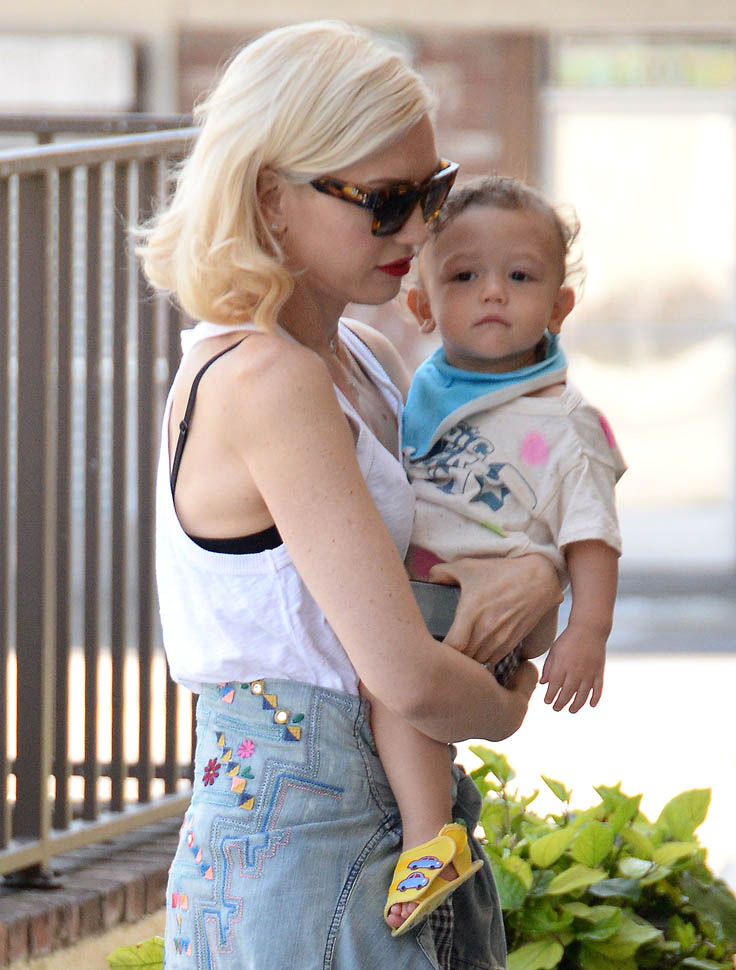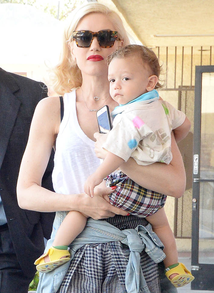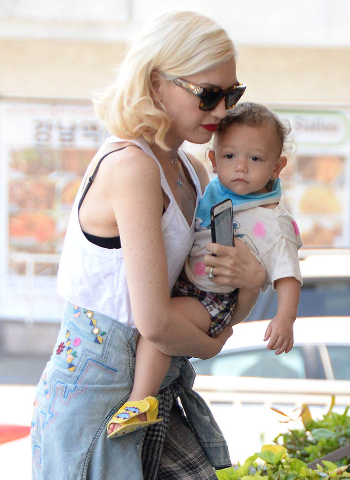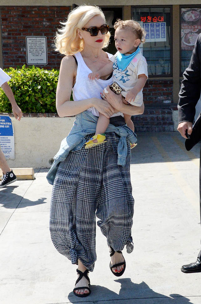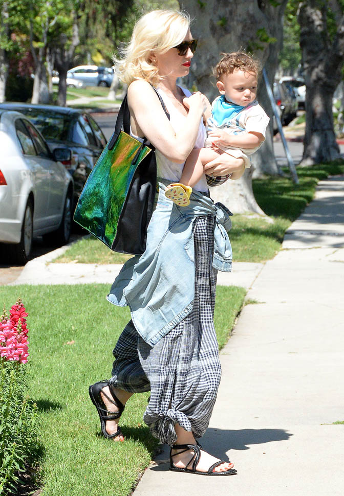 Attached - Gwen Stefani out with baby Apollo the other day in Los Angeles.