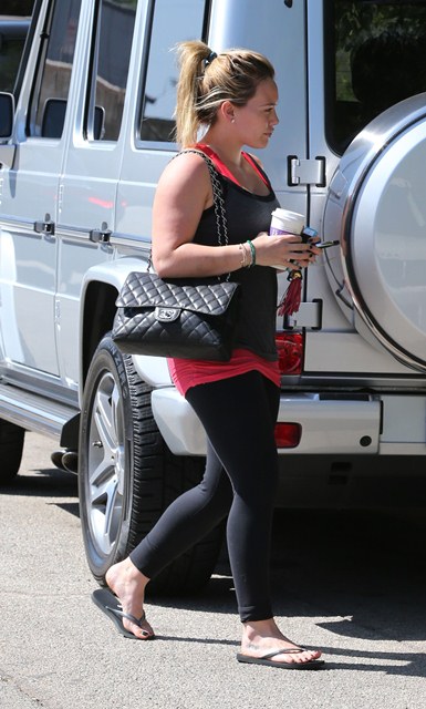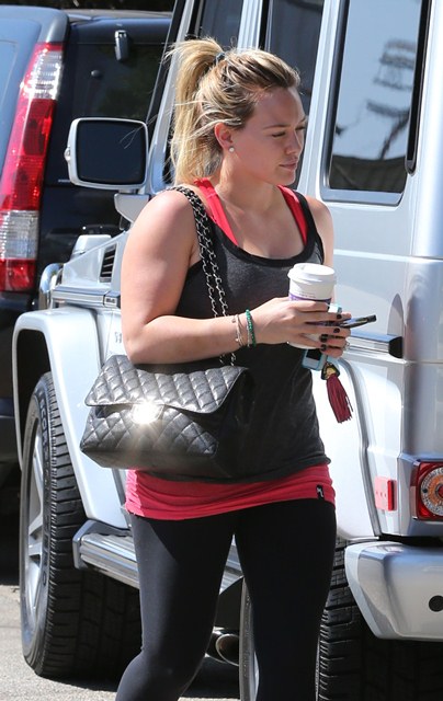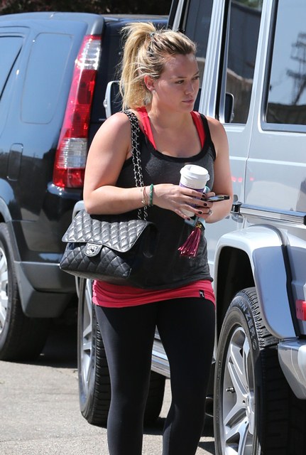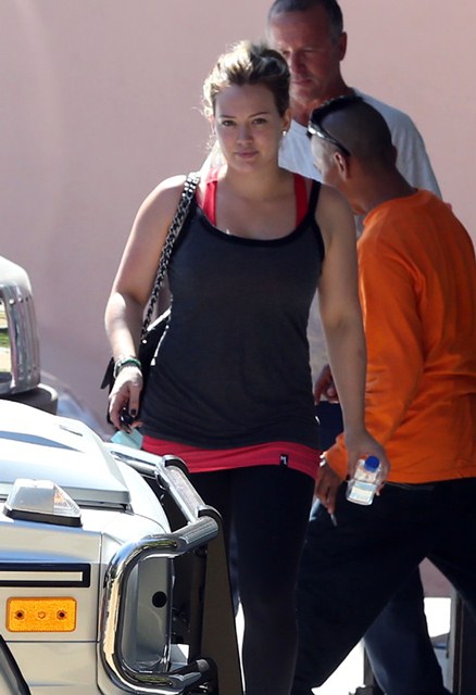 Attached - Hilary Duff goes to pilates.