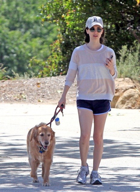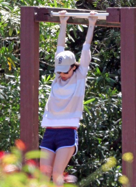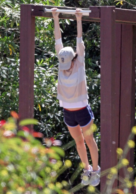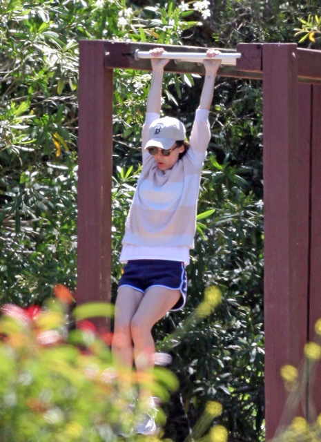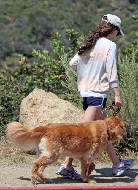 Attached - Eliza Dushku hiking with her dog and getting in some pull-ups.
