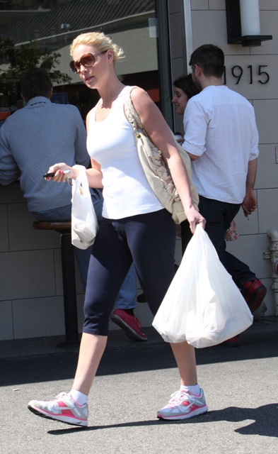 Attached - Katherine Heigl shopping for groceries after hitting the gym.