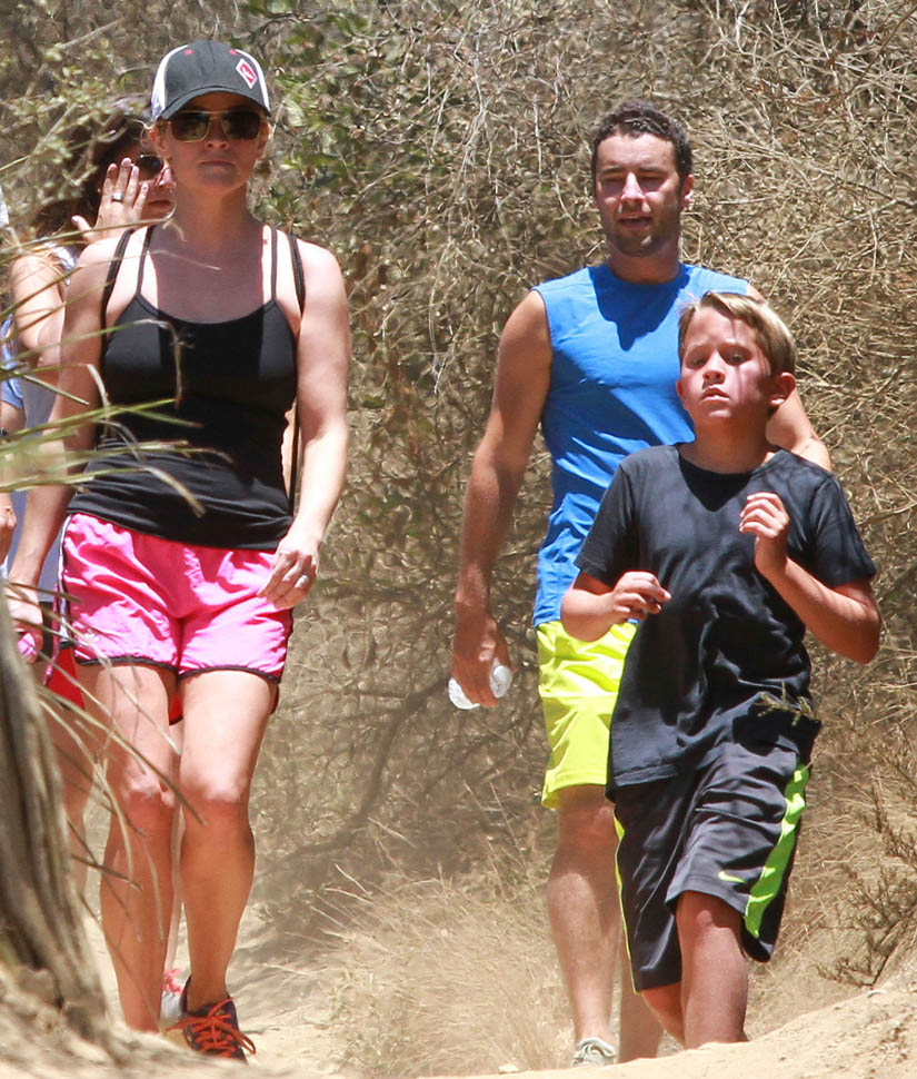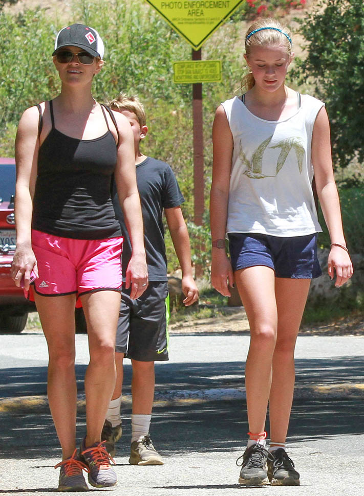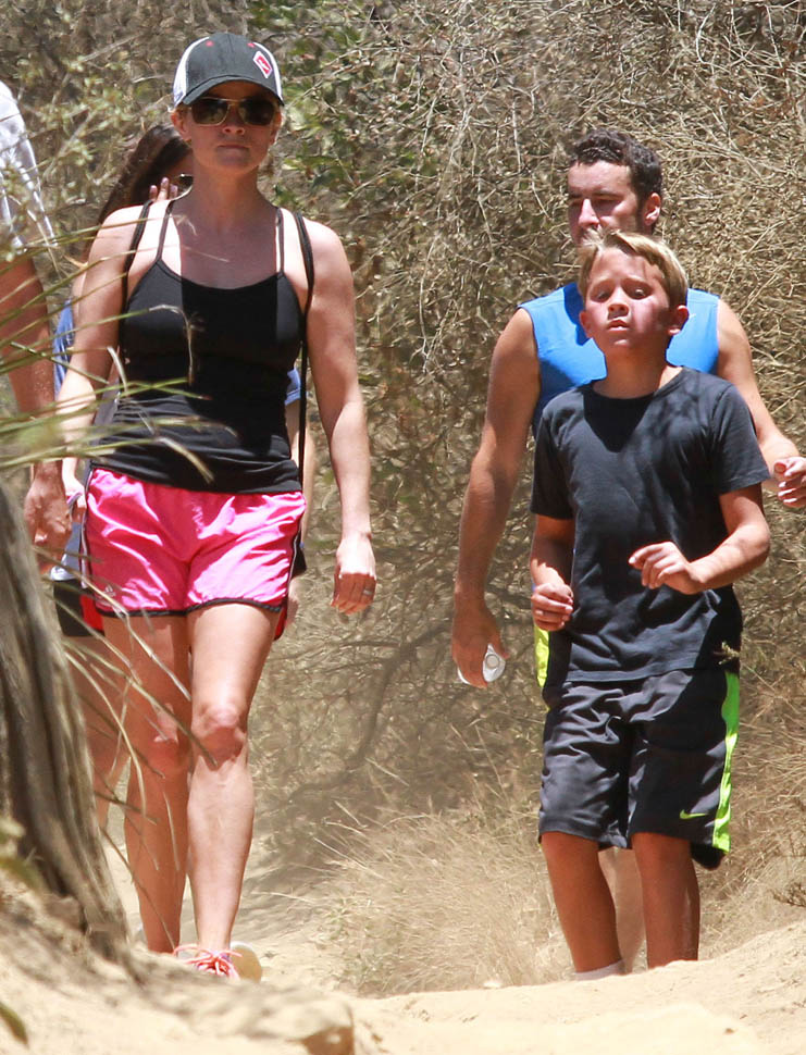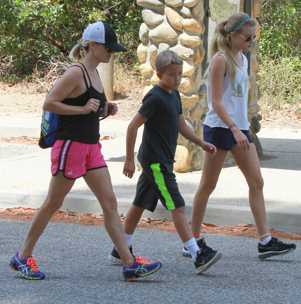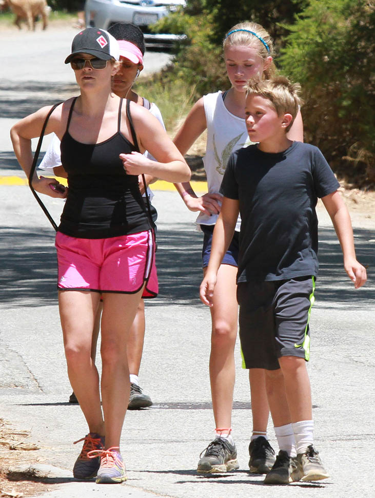 Attached - Reese Witherspoon hiking with her children on the weekend.