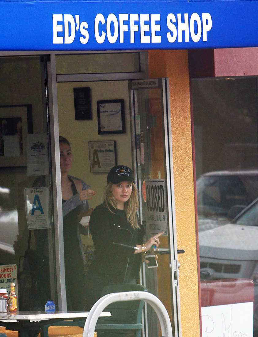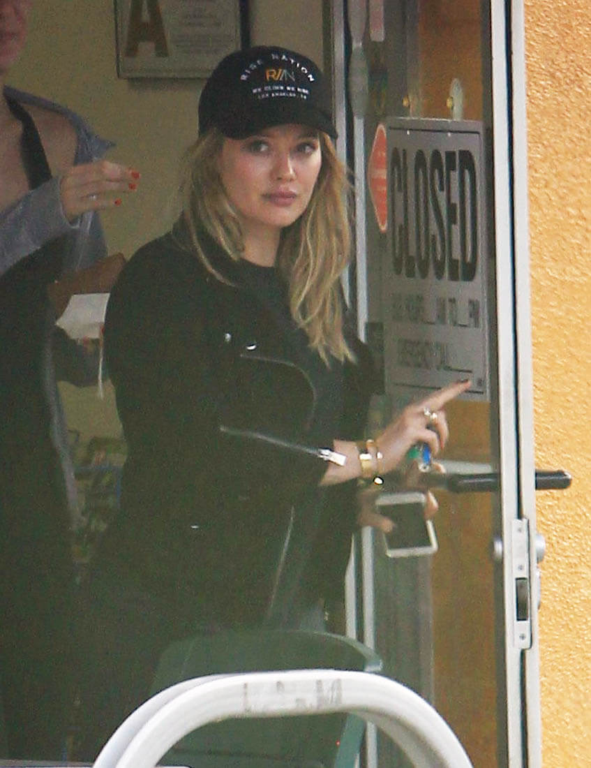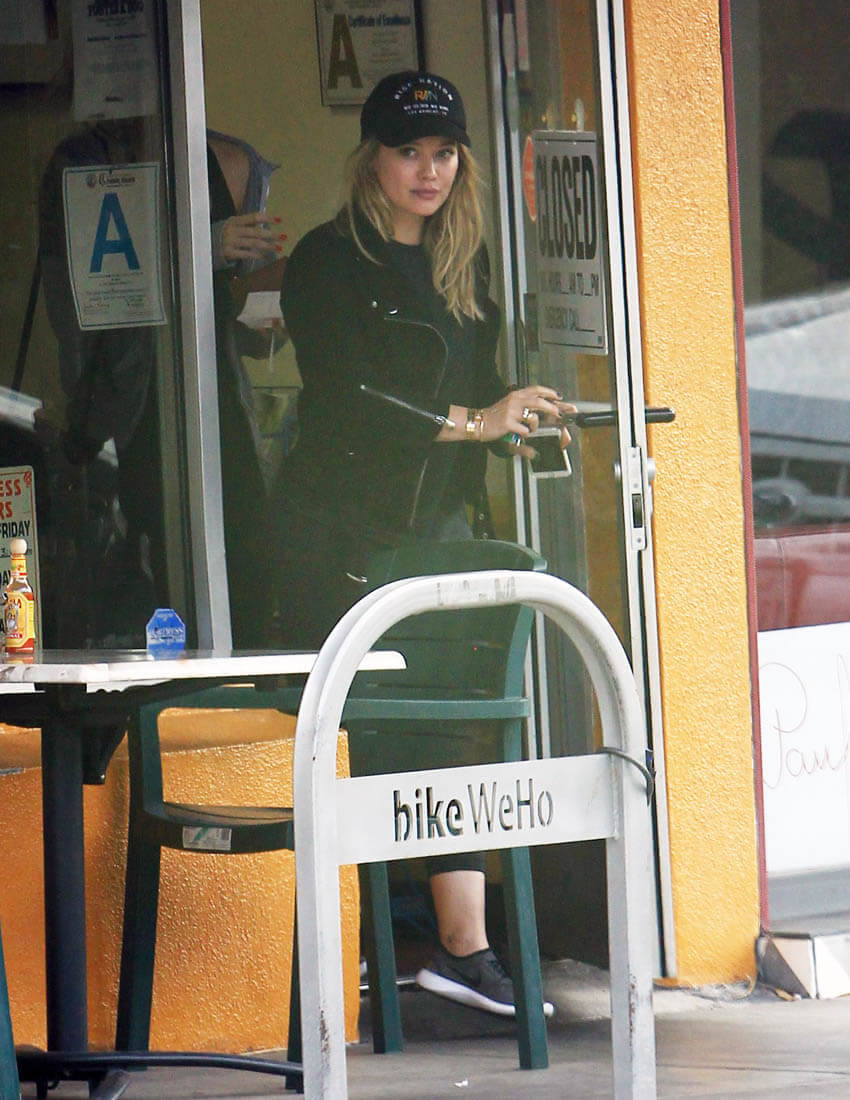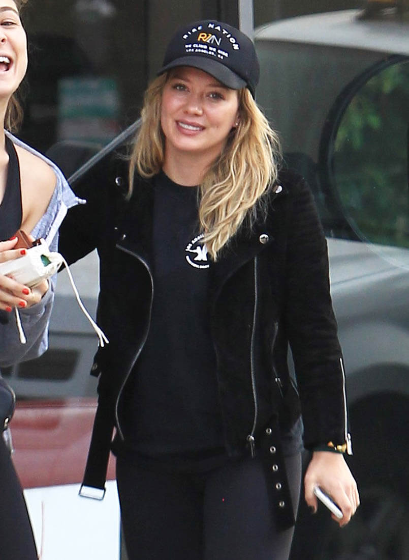 Attached - Hilary Duff having lunch with a friend after a workout in Hollywood.