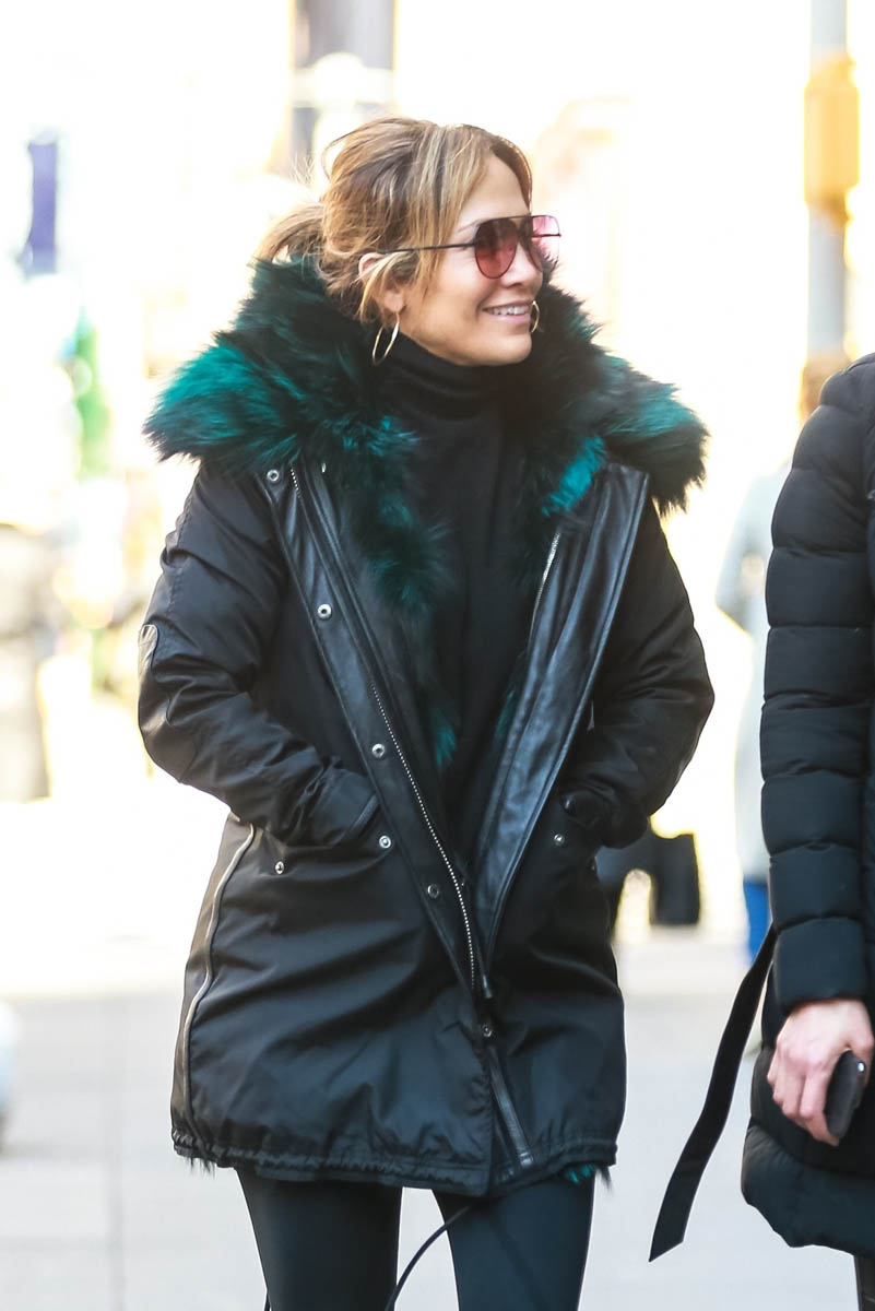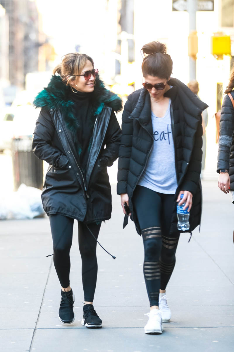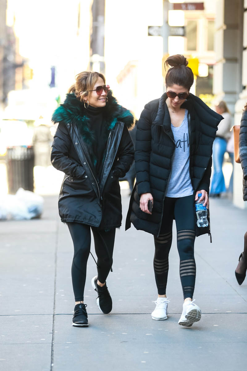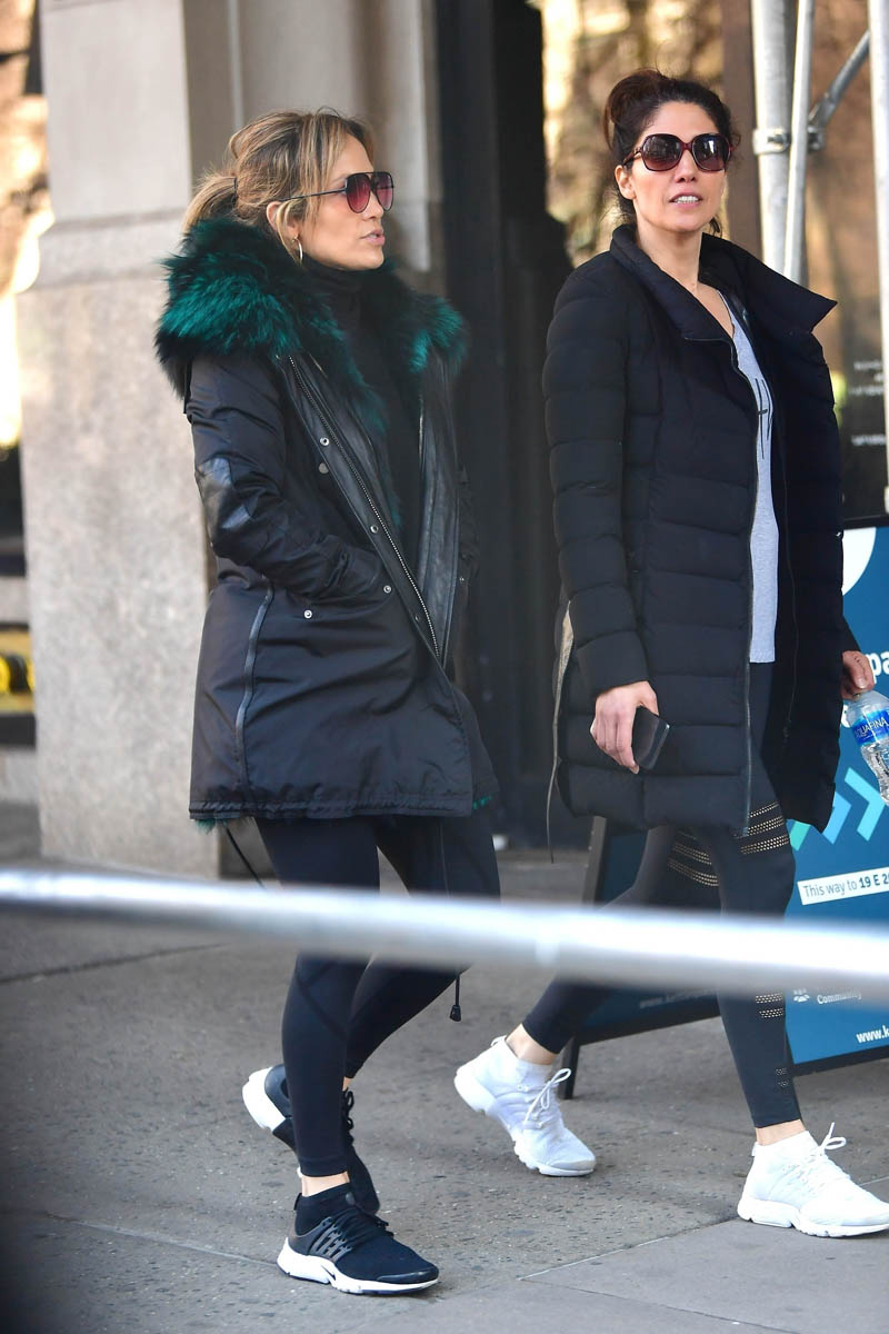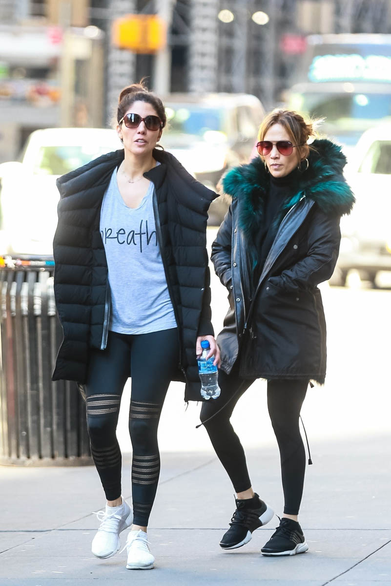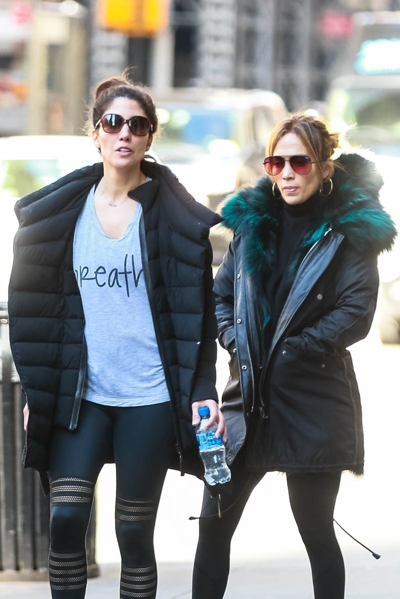 Attached - Jennifer Lopez leaving the gym today in New York.
