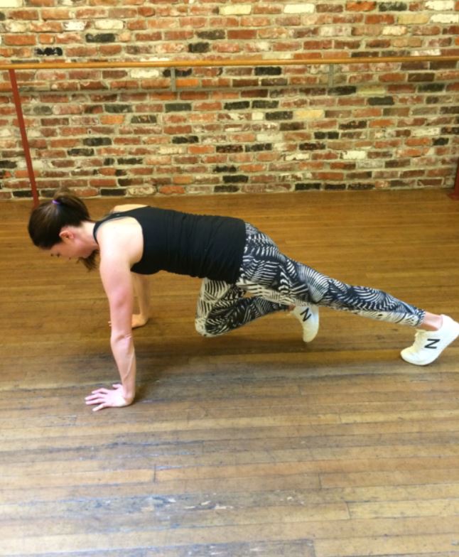 Start in a push-up position with a long, straight spine. Bring one knee into your chest without arching your back and then quickly switch feet, driving the other knee into your chest. Repeat this as slow or as fast as you like for 60 seconds.