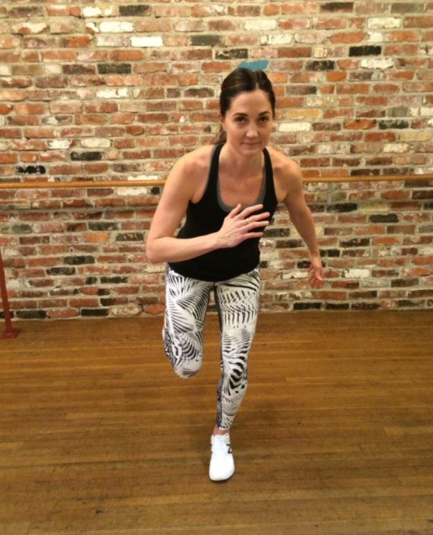 This is a definite heart rate booster and leg burner. Begin with one leg forward, one leg back in a lunge position and then jump into the air as high as you can, landing in the same position as you started. Repeat for 60 seconds.