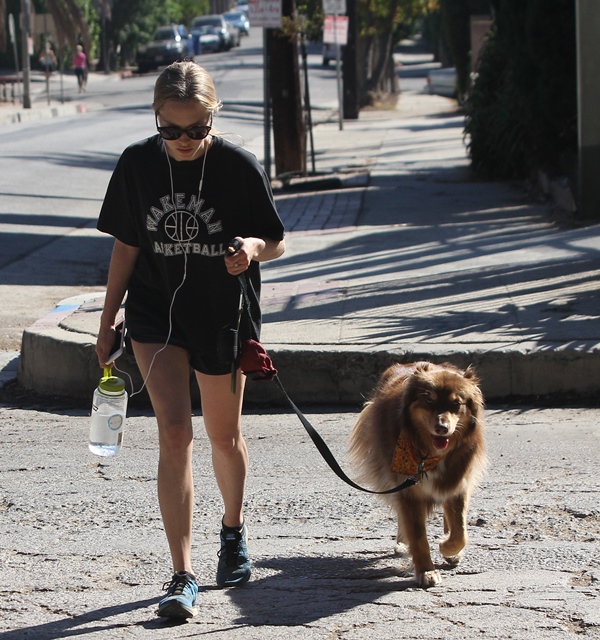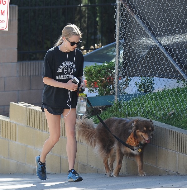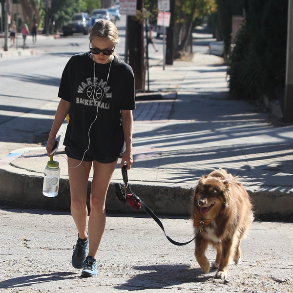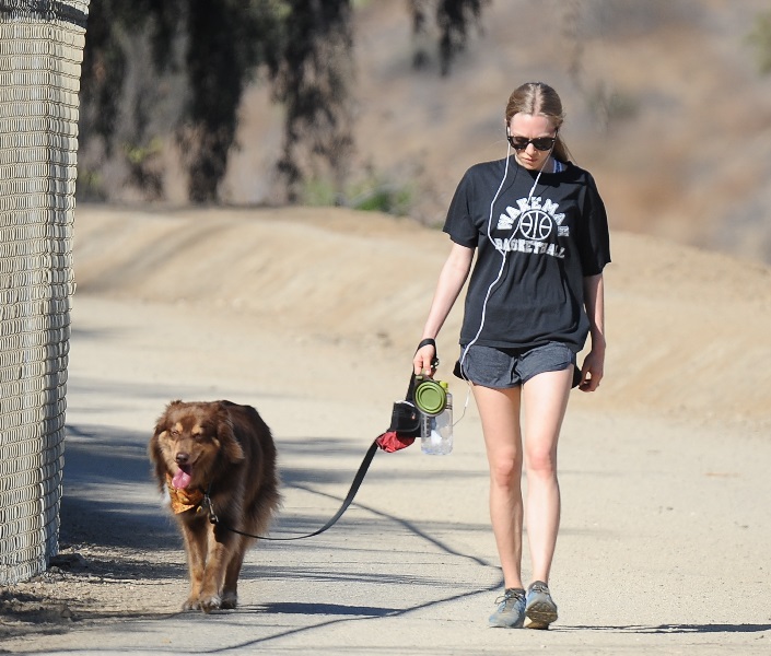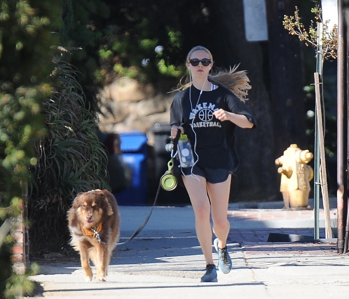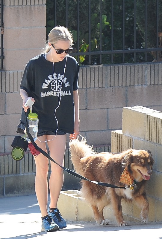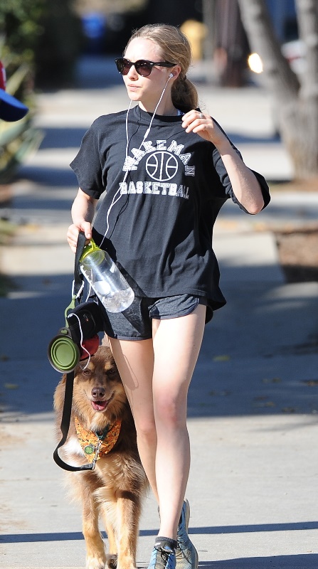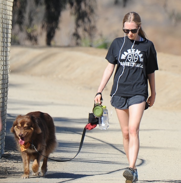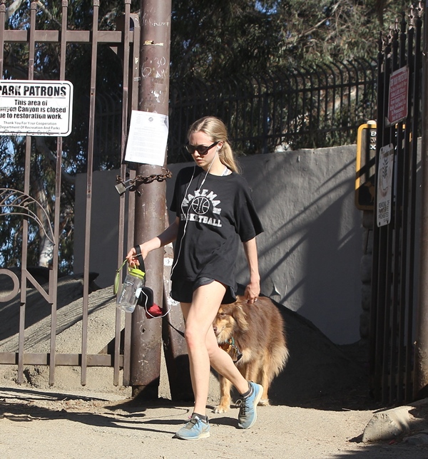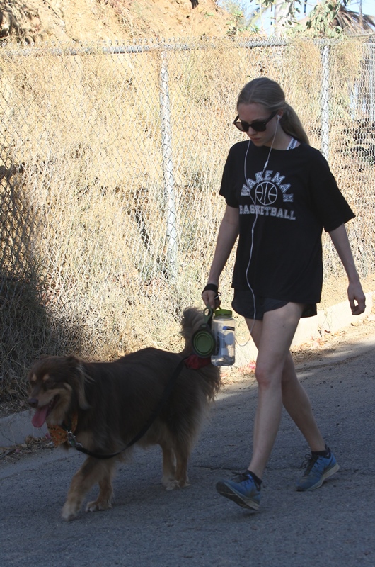 Attached - Amanda Seyfried hiking with her dog yesterday in Hollywood.