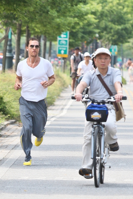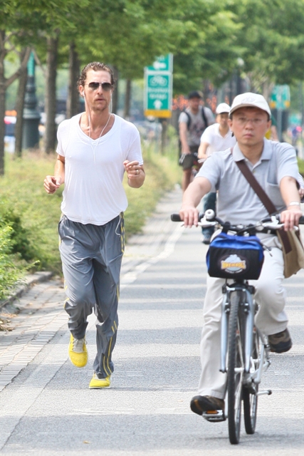 Attached - Matthew McConaughey out running in New York yesterday.