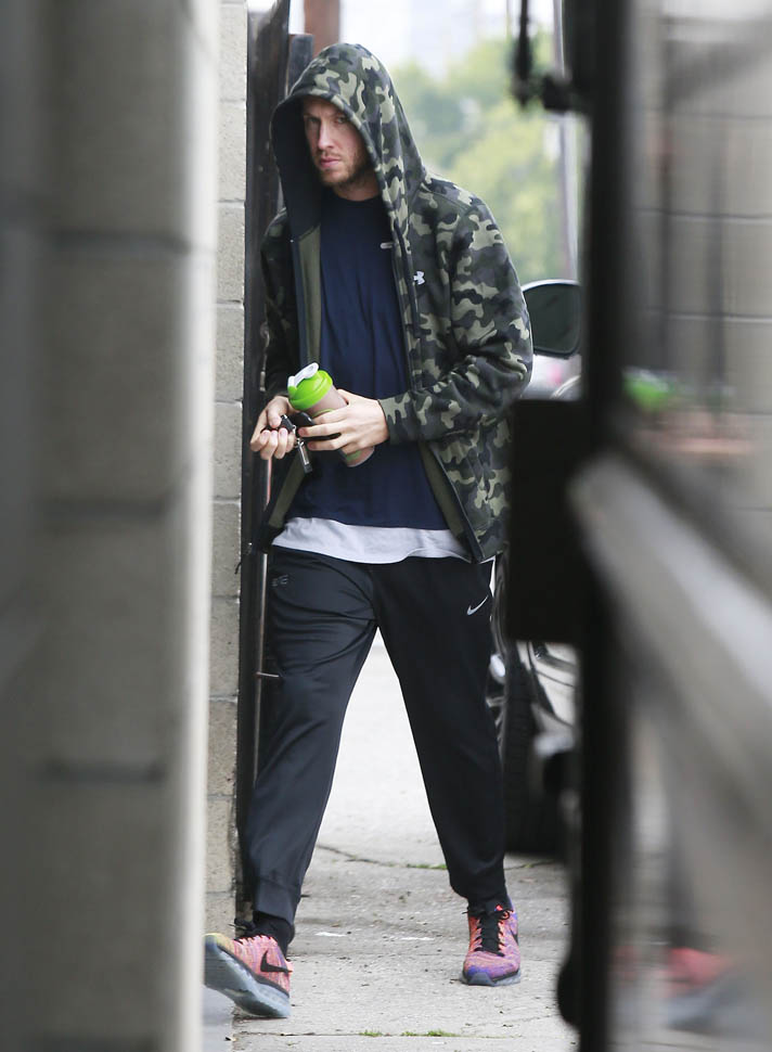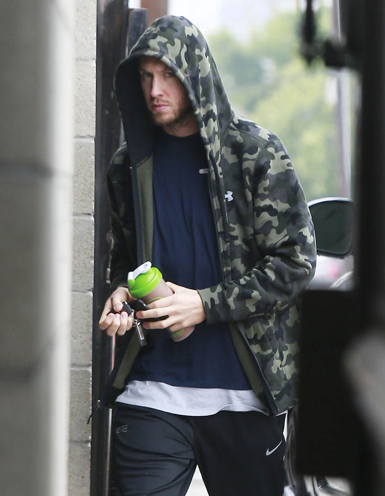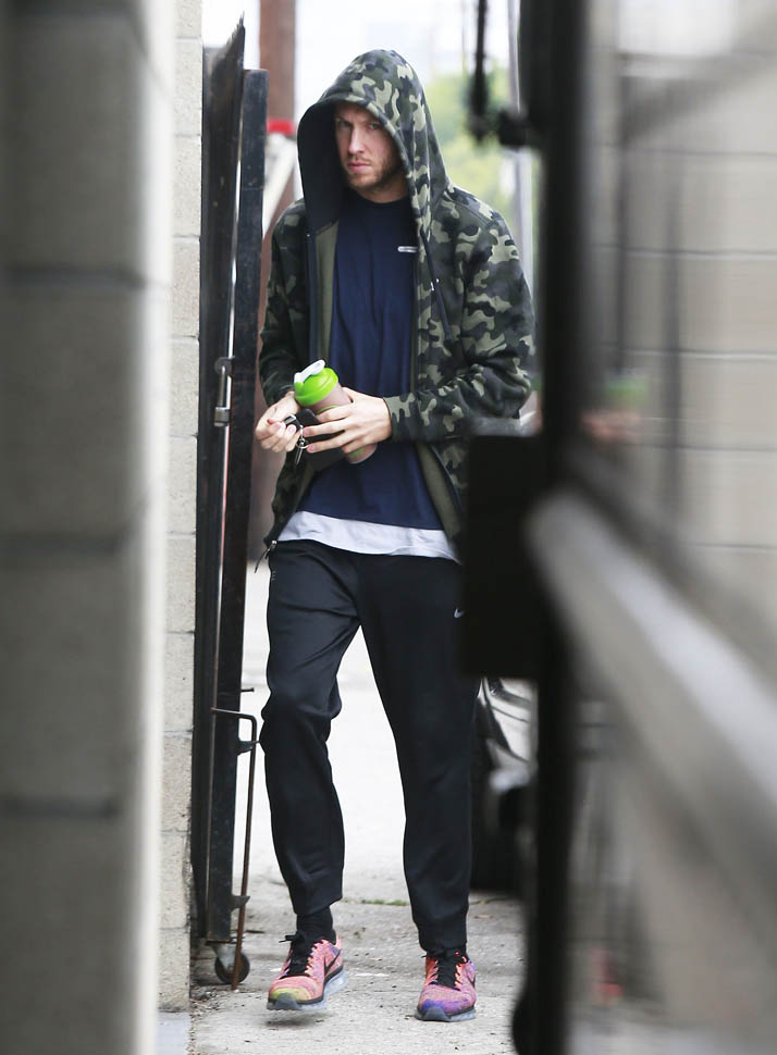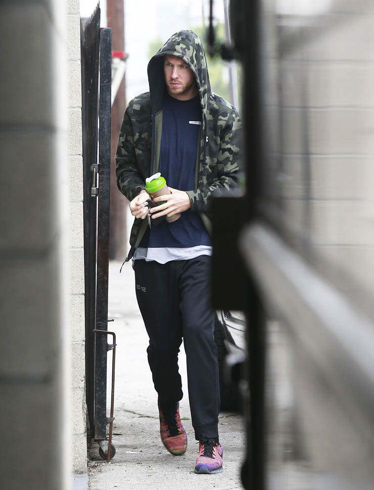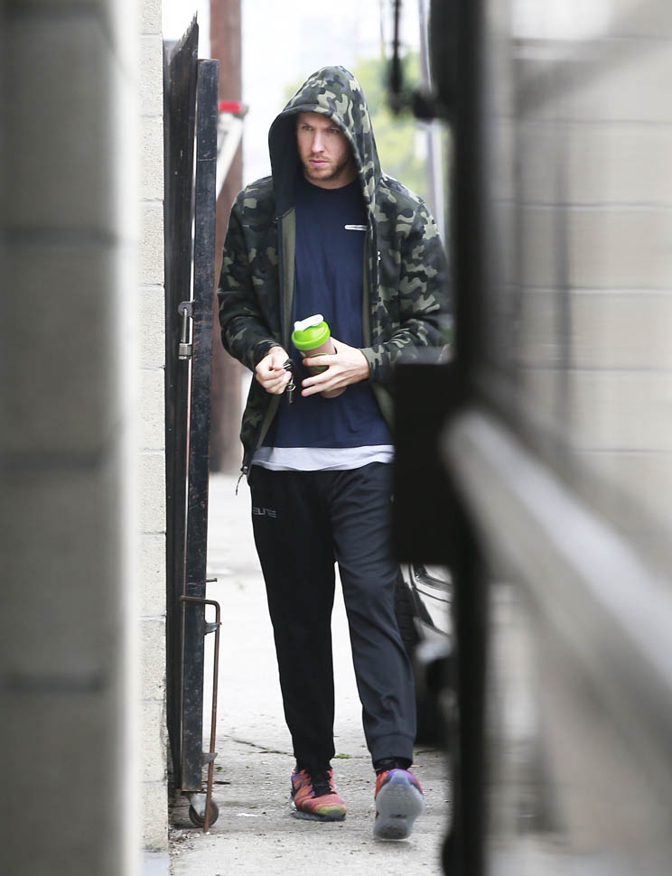 Attached - Calvin Harris heading to the gym the other day in Los Angeles.