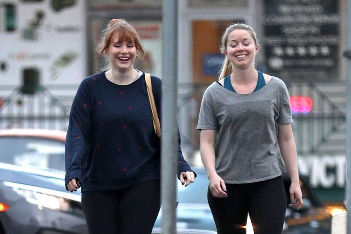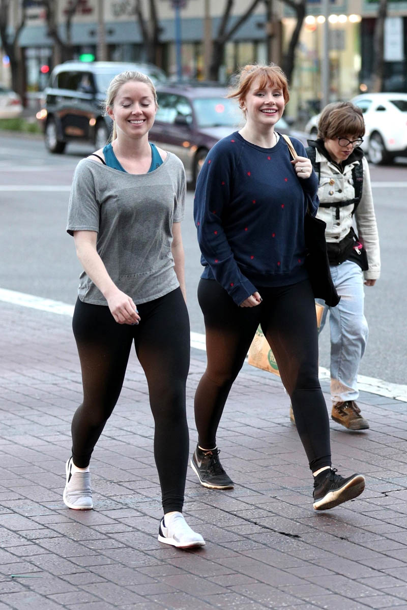 Attached - Bryce Dallas Howard leaving the gym with a friend the other day in LA.