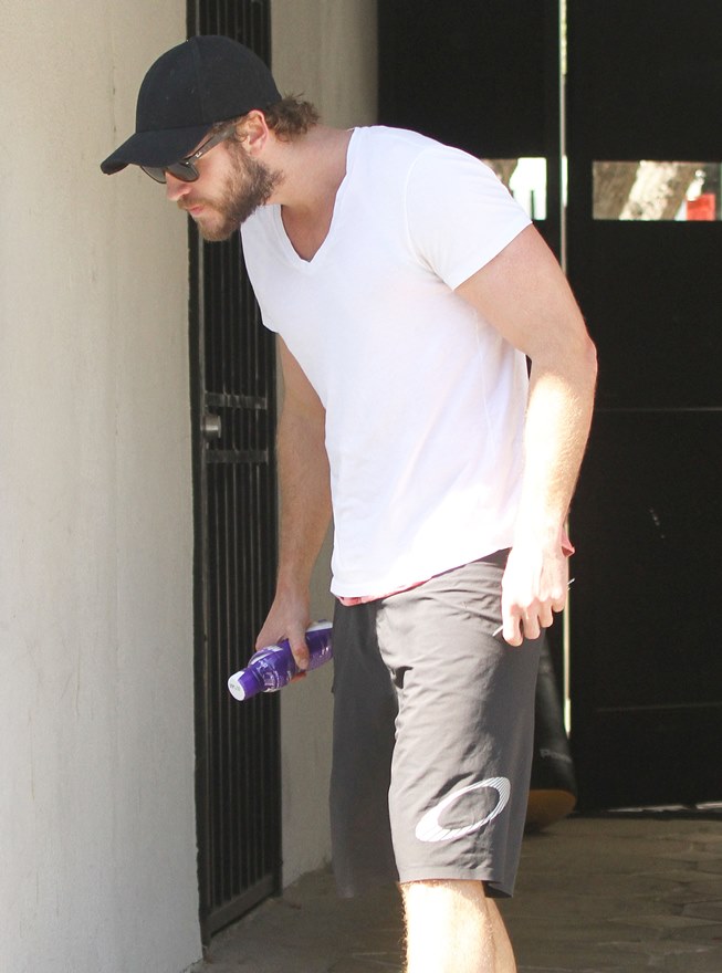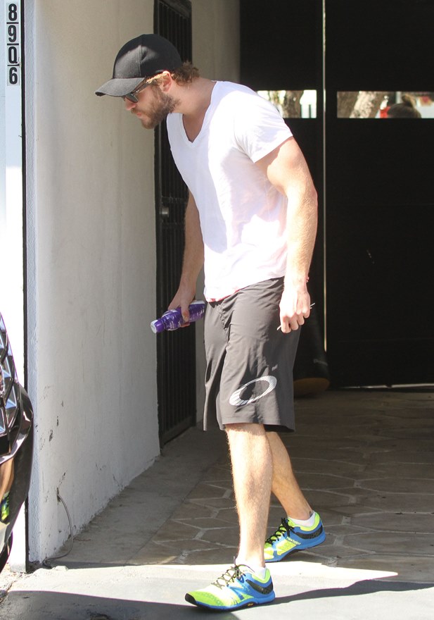 Attached -- Liam Hemsworth leaving the gym yesterday.