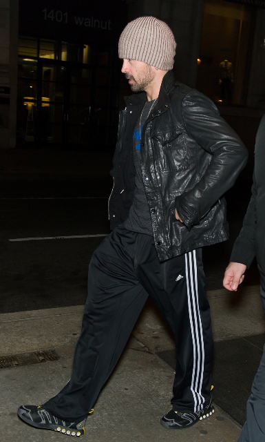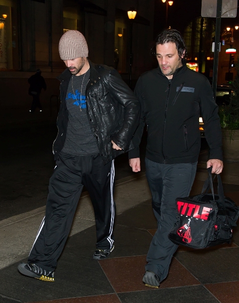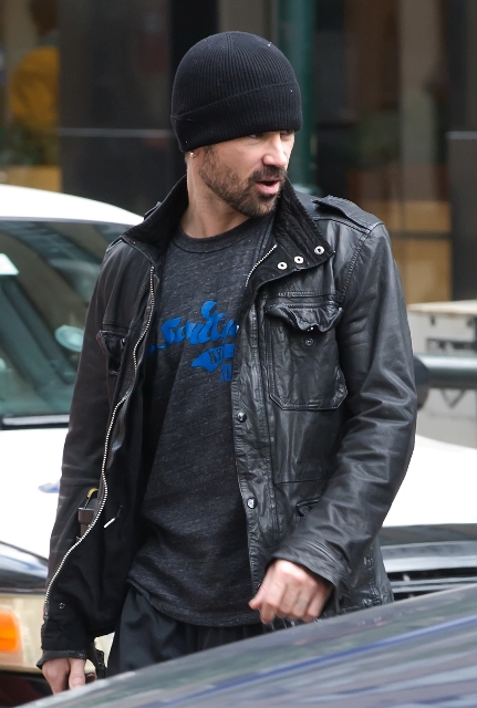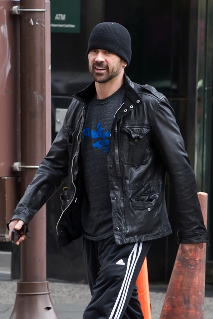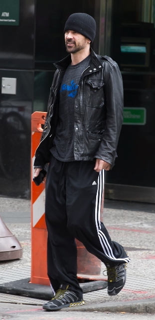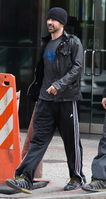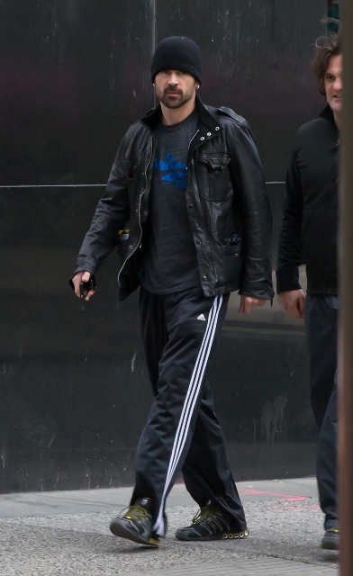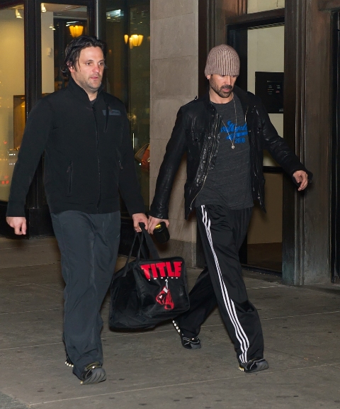 Attached - Colin Farrell and his longtime trainer before and after working out in Philadelphia.