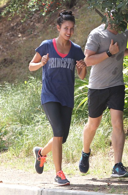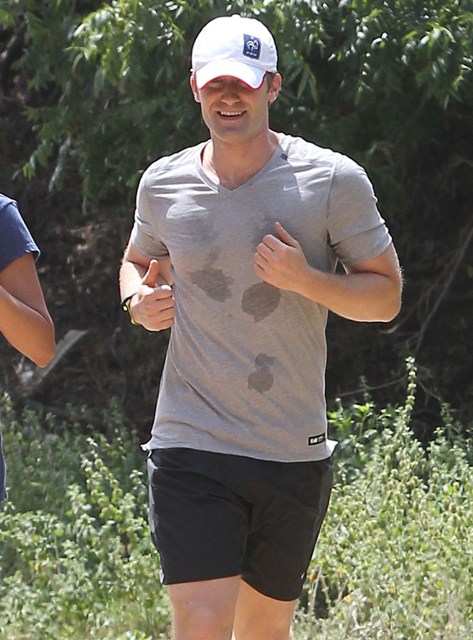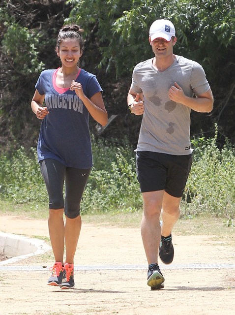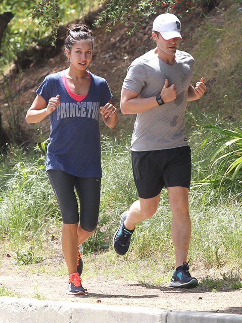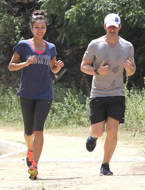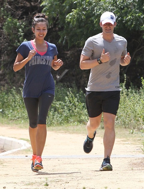 Attached - Matthew Morrison running with a friend earlier this week.