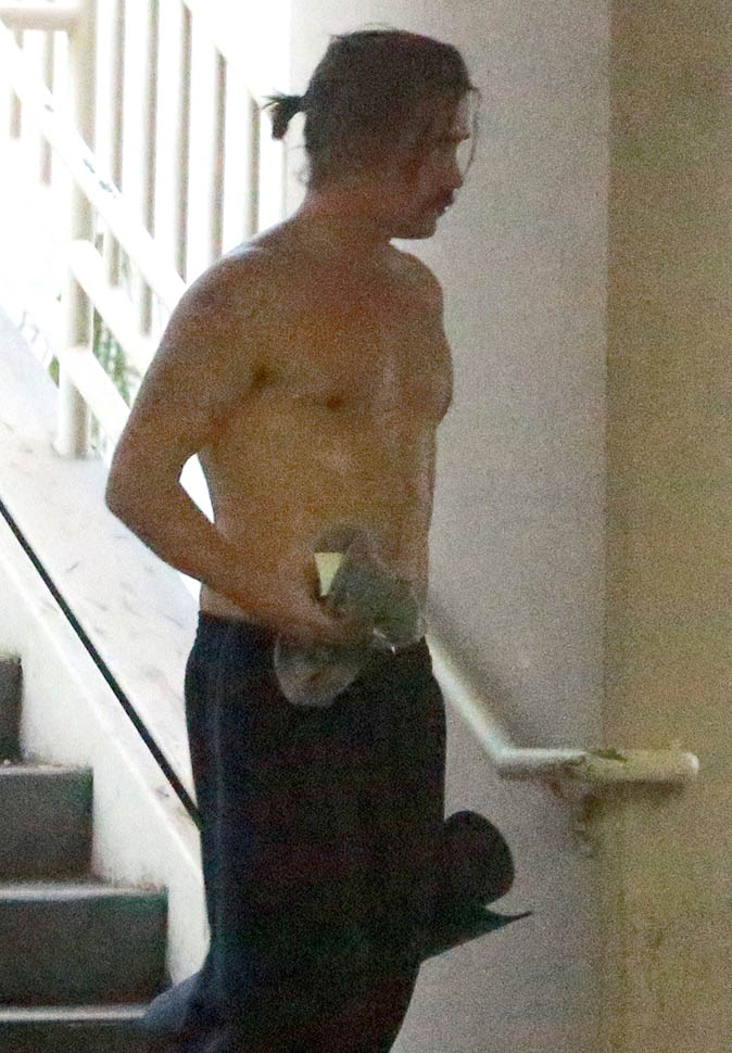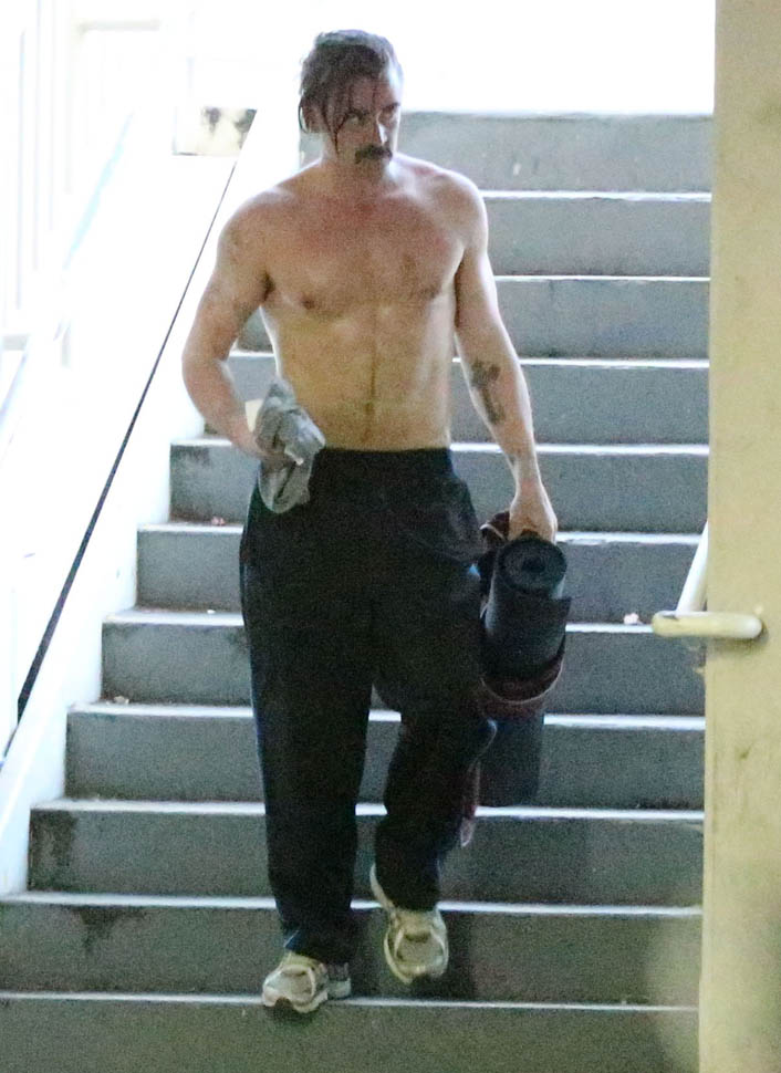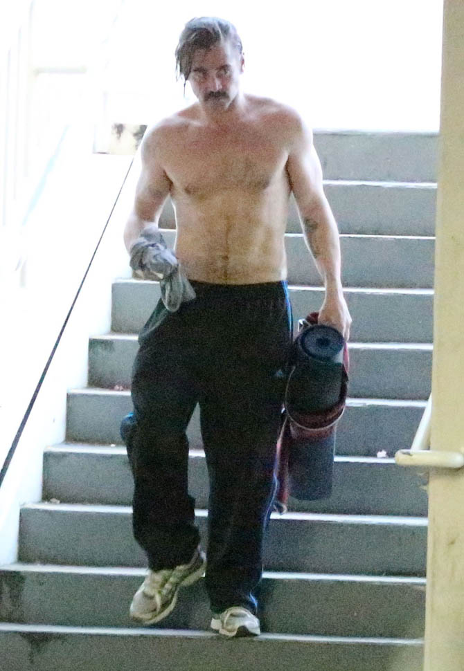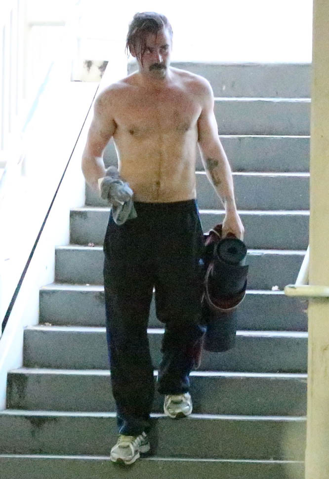 Attached - Colin Farrell leaving a yoga class the other day.