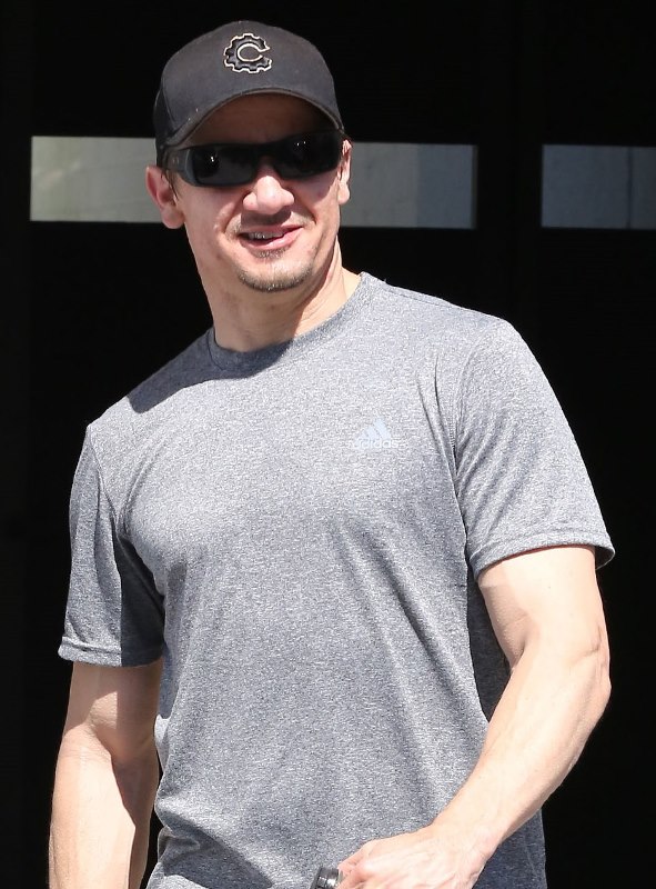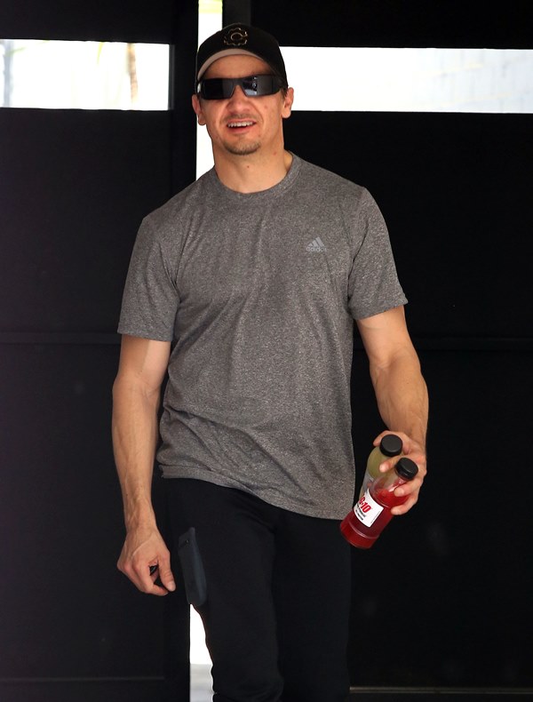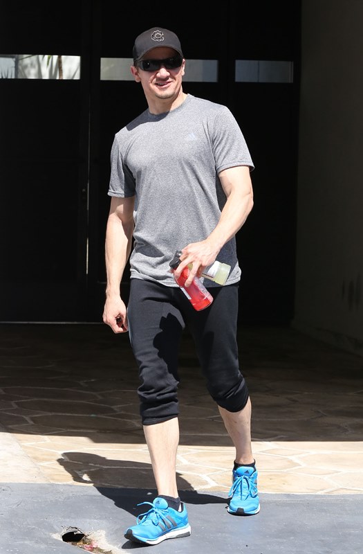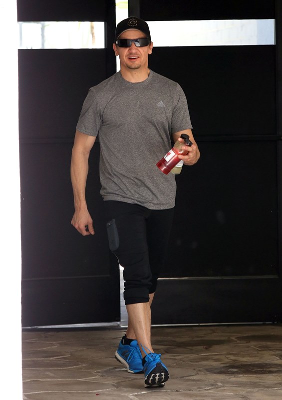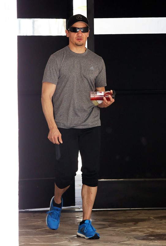Attached – Jeremy Renner leaves the gym.