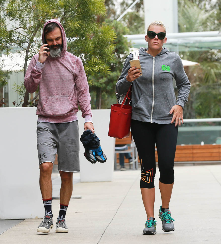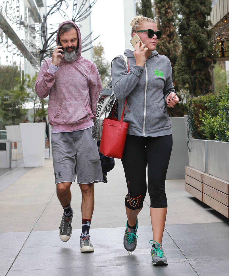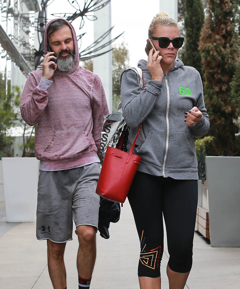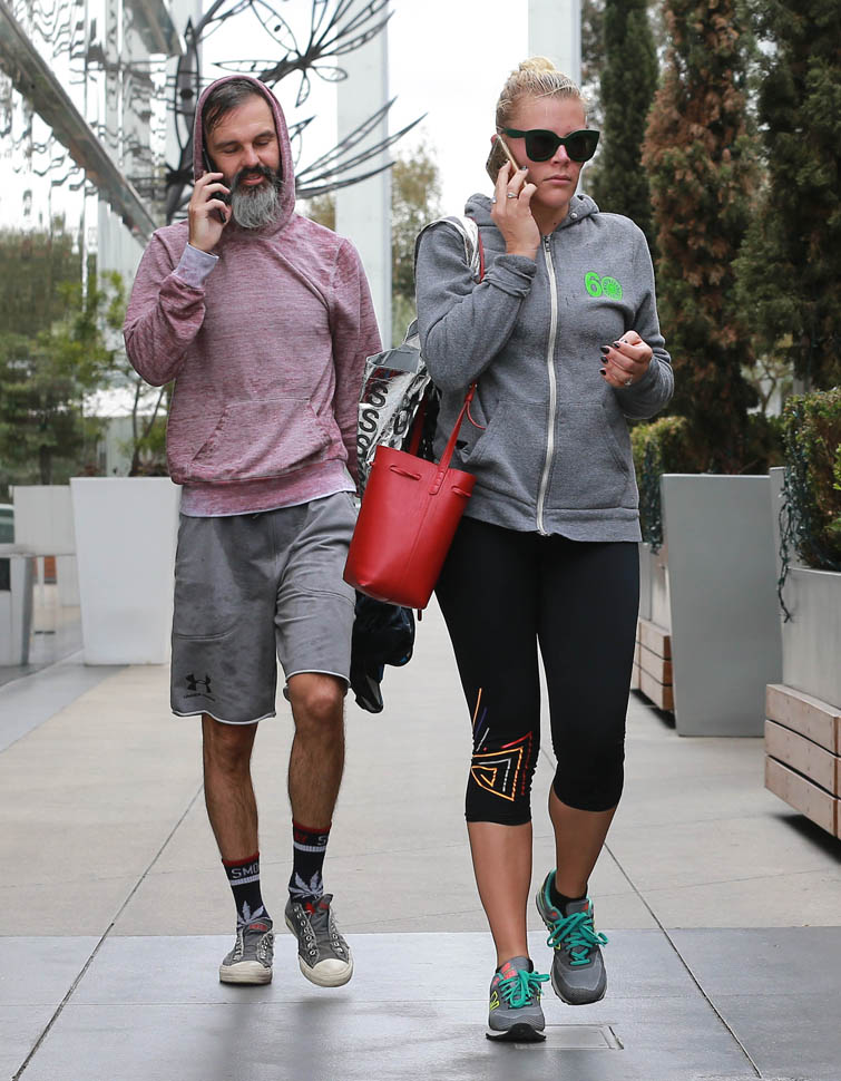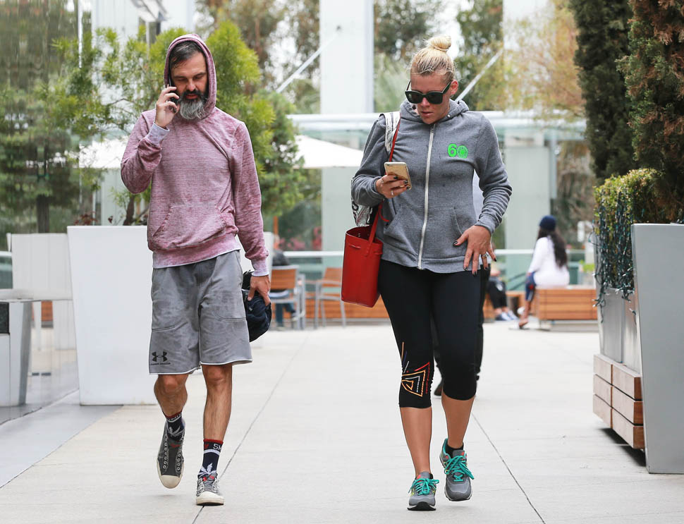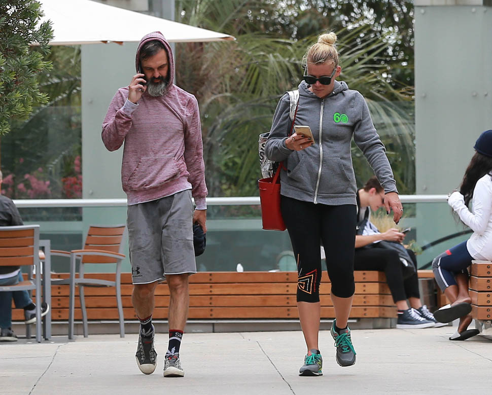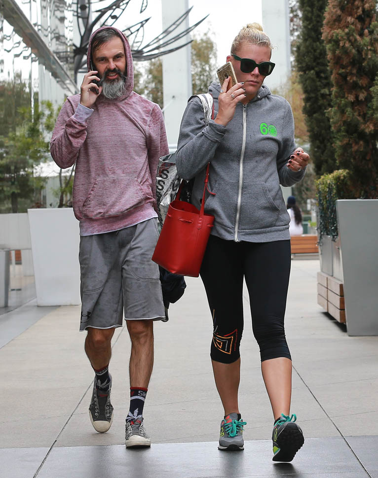 Attached - Busy Philipps and her husband Marc Silverstein leaving a Soul Cycle class today in LA.