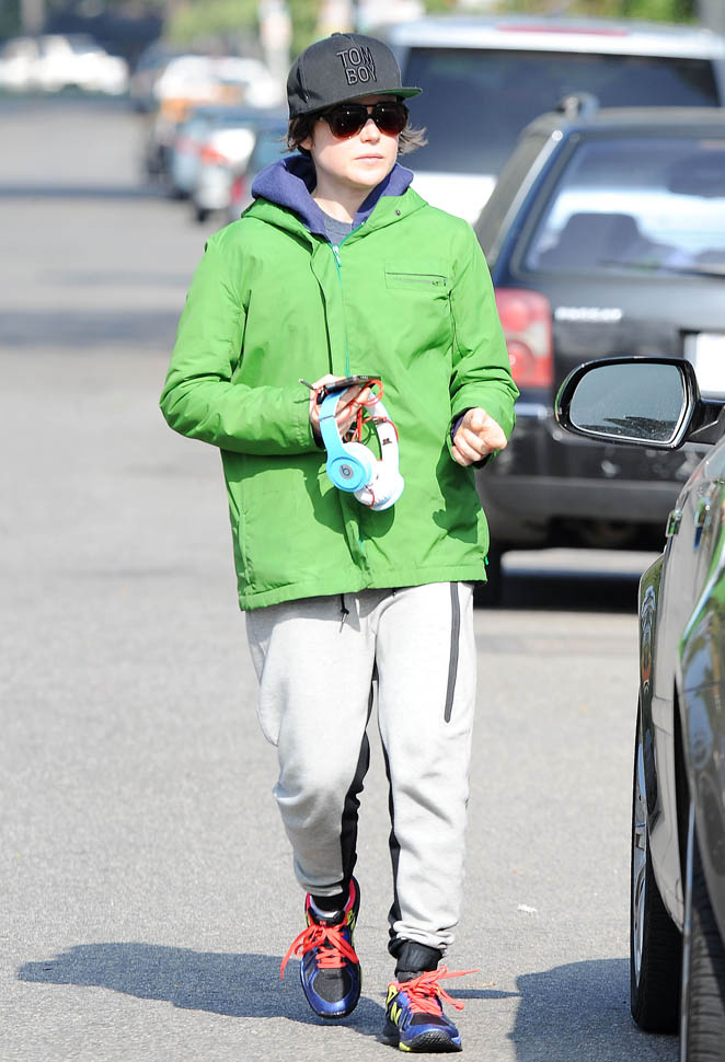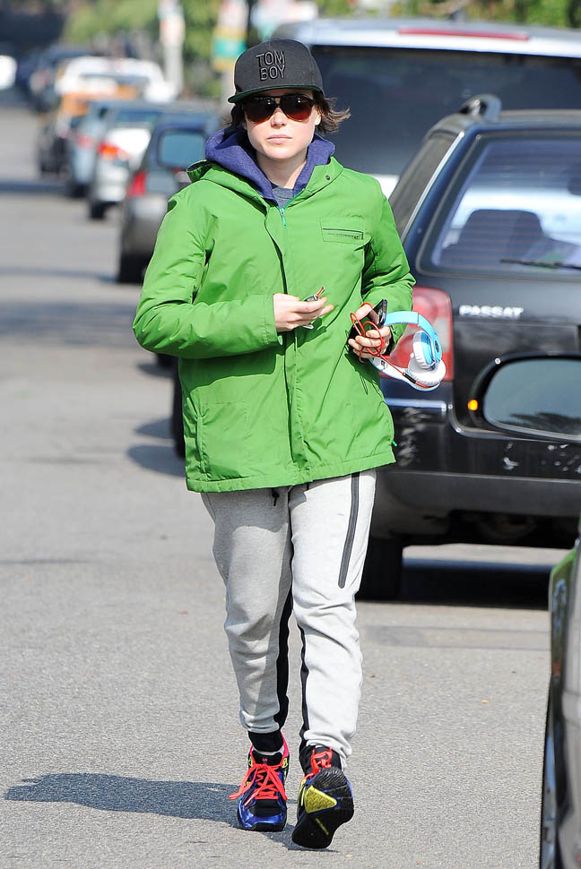 I don’t know if Ellen Page is actually sweating but she’s wearing a lot of layers and it looks like there might be a workout involved. Me, I can’t stand being hot when I’m exercising. It’s why I can’t do hot yoga. Also I’m afraid of people smelling.