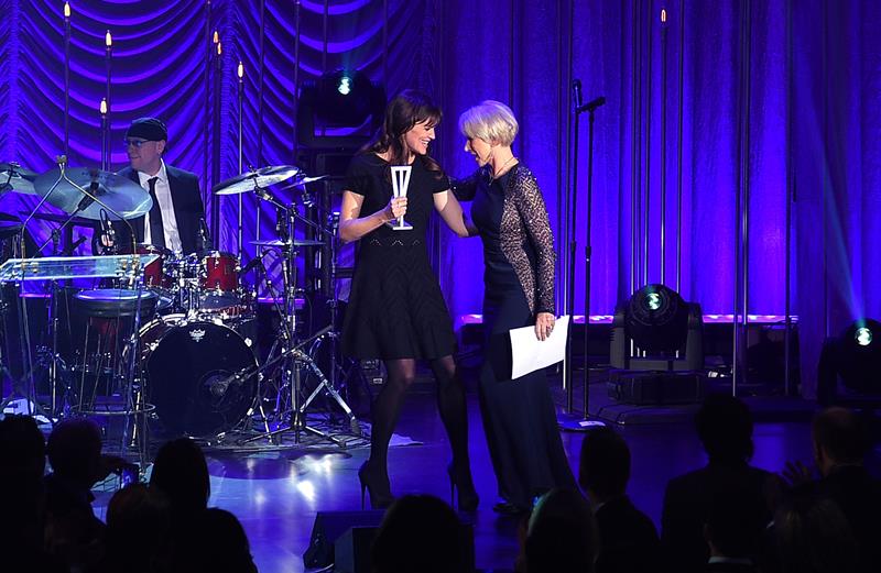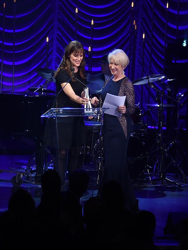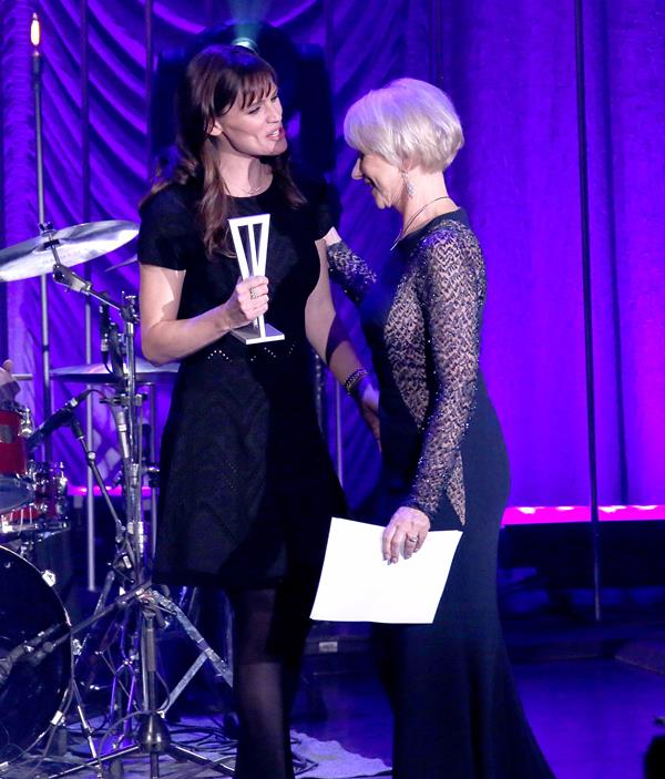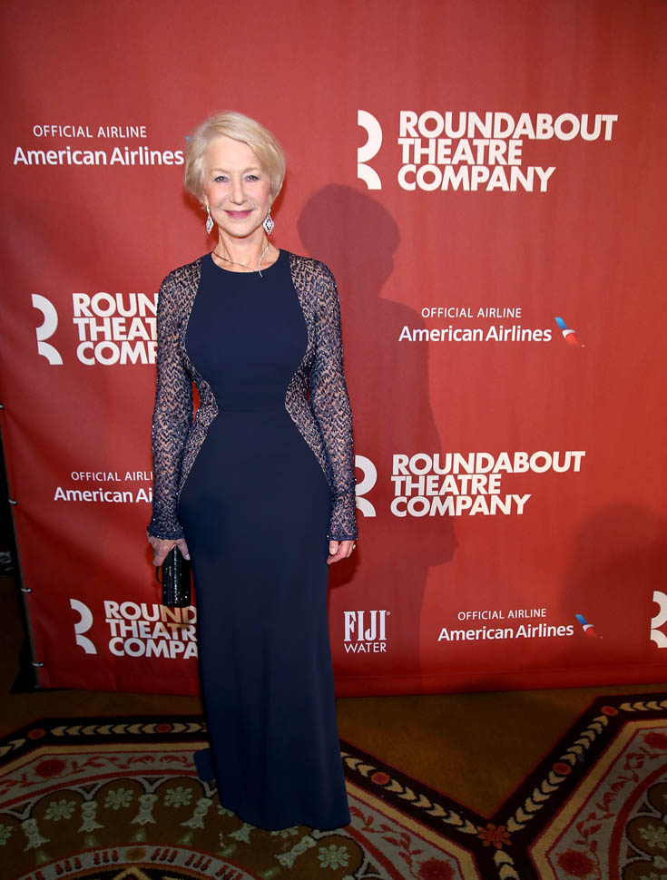 Look at how amazing Helen Mirren is in this dress last night at the Roundabout Theatre Company Spring Gala (WHAT SPRING? THERE’S A SNOW STORM RAGING IN TORONTO???). Helen was on stage with Jennifer Garner who wore a very cute little black dress that gets totally brought down by her hair, specifically the fringe. Think of how much MORE this entire look would be if that fringe wasn’t in the way.