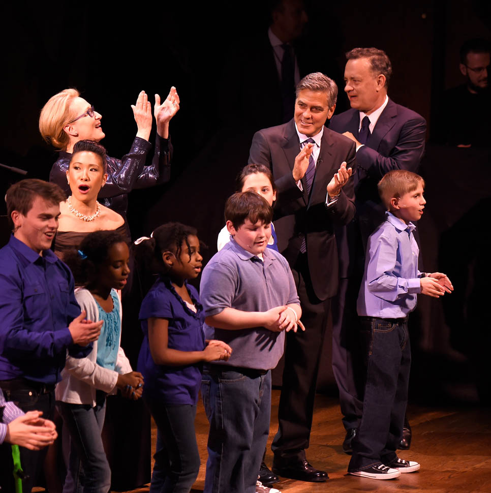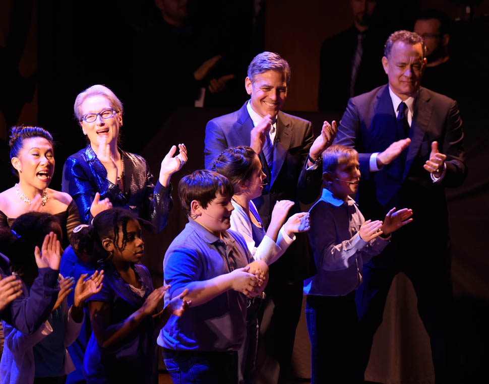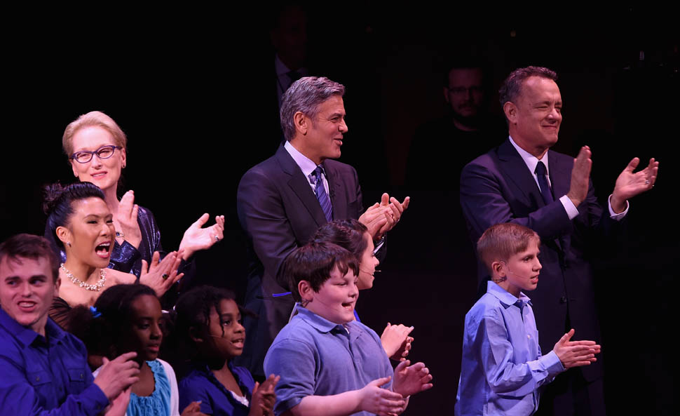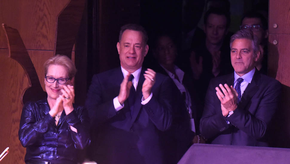 Over in New York last night, some major stars showed up for the SeriousFun Children’s network: Meryl Streep, Tom Hanks, George Clooney, Danny DeVito, all smiles, friendly and fun with each other, but no Amal. Must have been a work night for her.