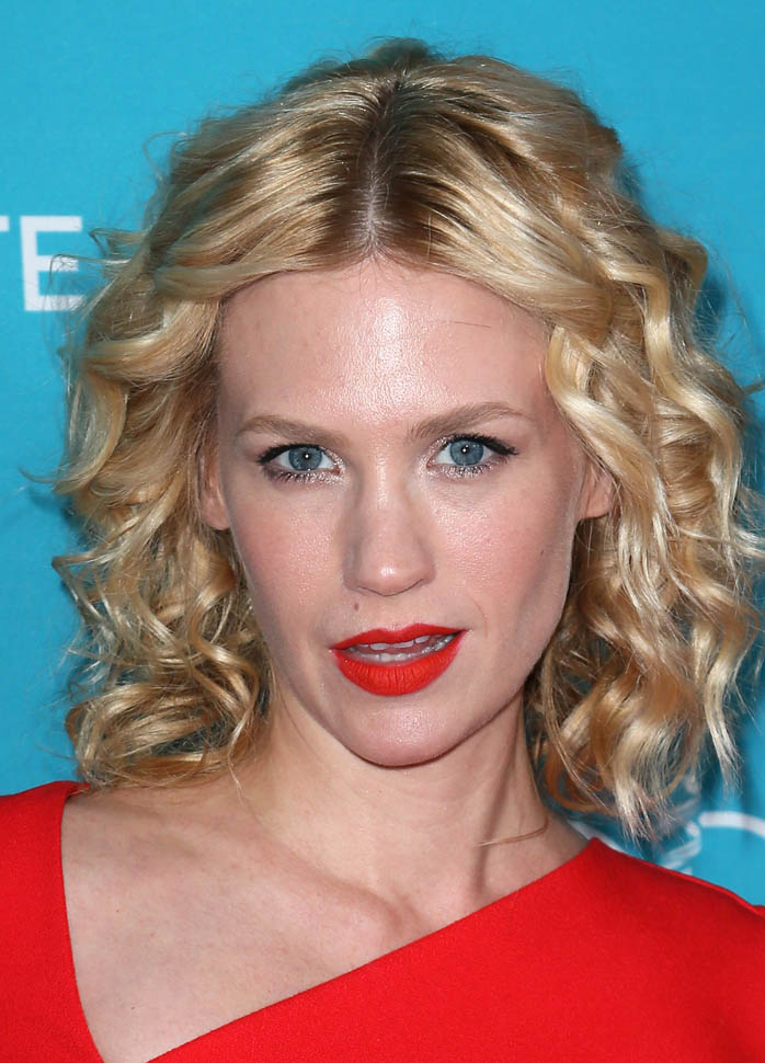 January Jones’s hair at the Costume Designers Guild Awards last night. Can you explain it? Can you tell me what the f-ck is happening to it? And why anyone would agree to wearing it like this?