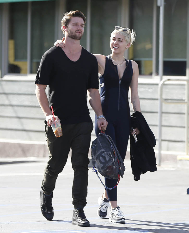 Miley Cyrus and Patrick Schwarzenegger are back in LA after holiday in Maui. Today they were papped while out for lunch. Question: is that her Chanel backpack or his?