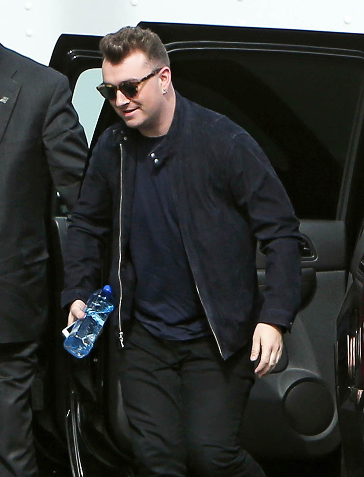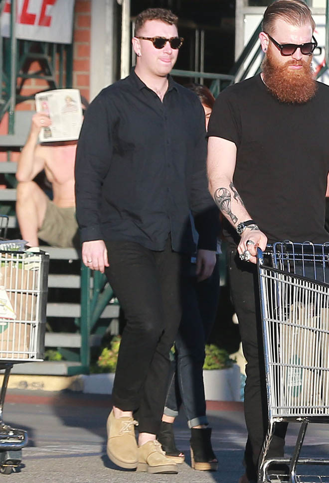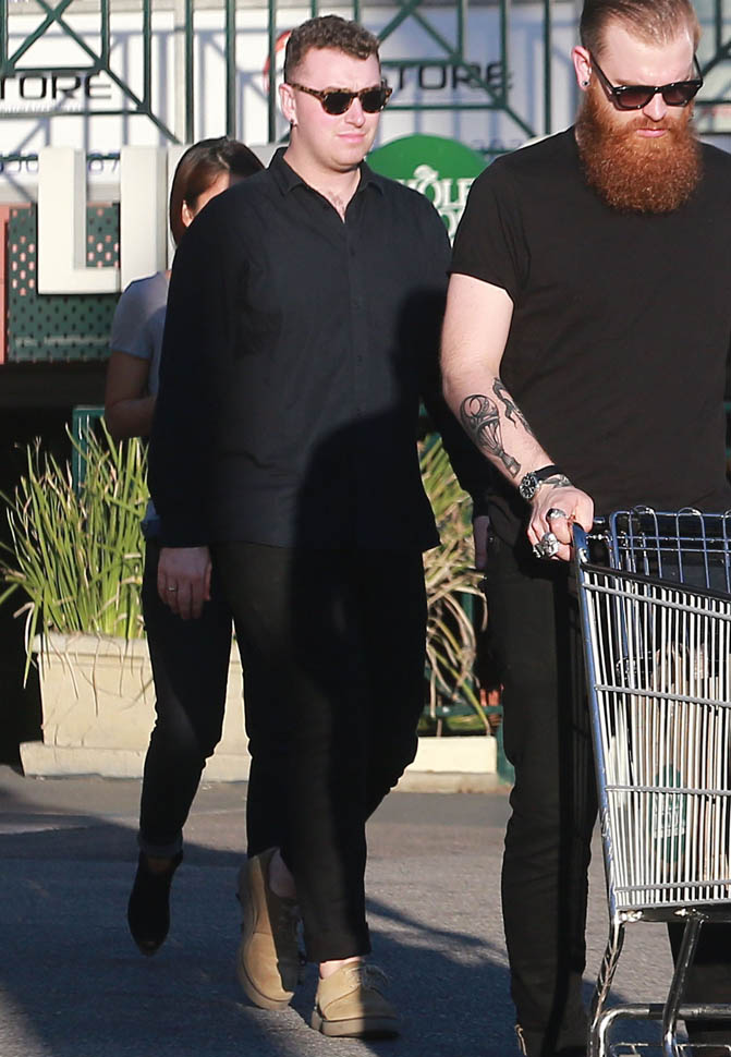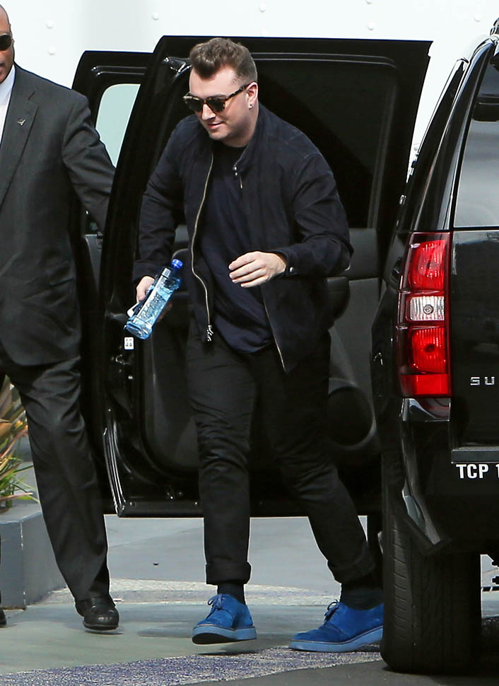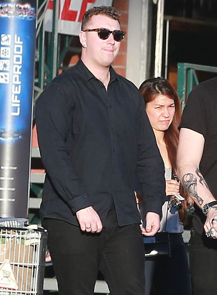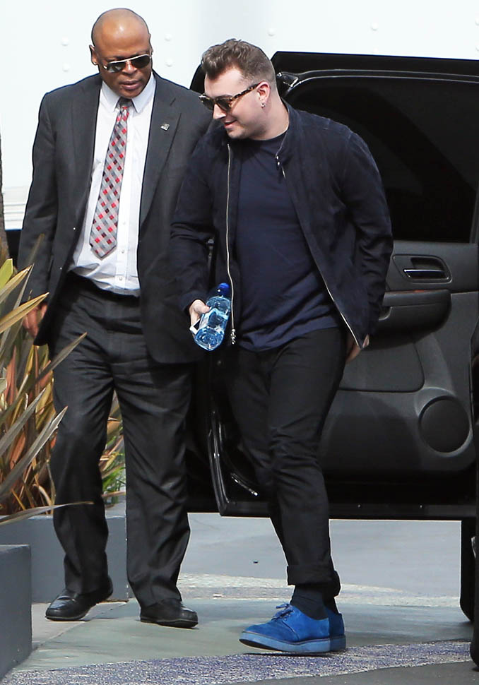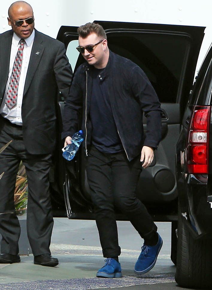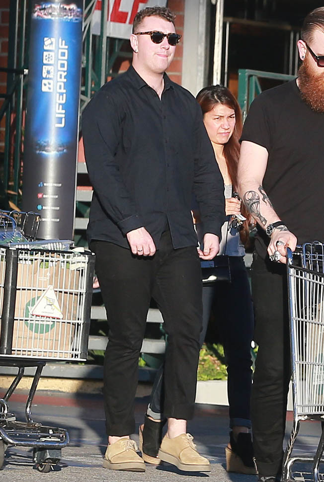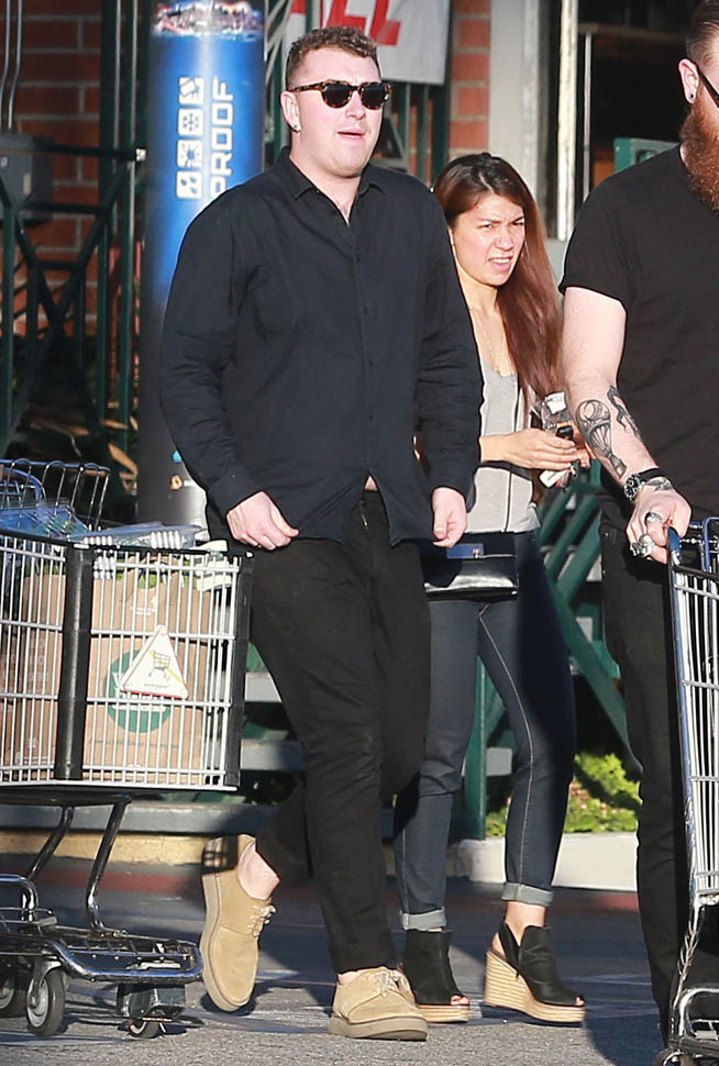 Fresh off his big Grammy wins, Sam Smith went out for groceries yesterday and was also papped today at a meeting at Capitol records.
