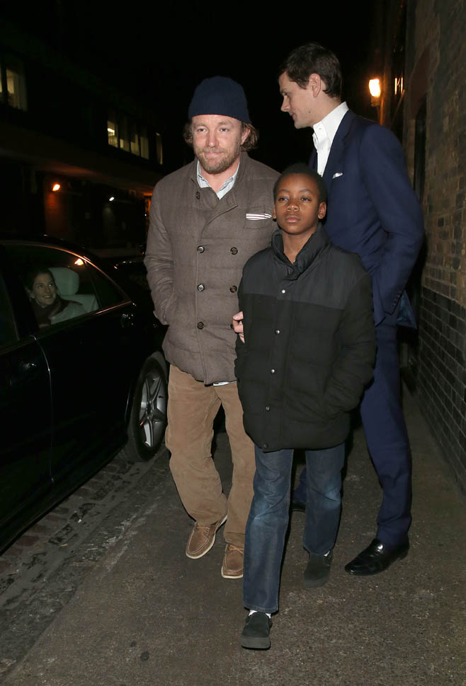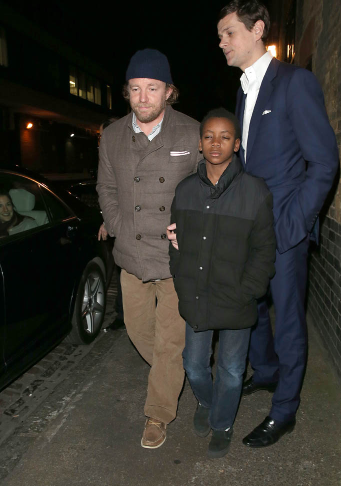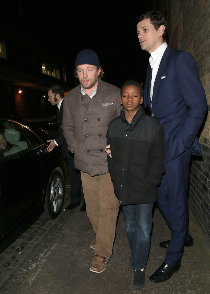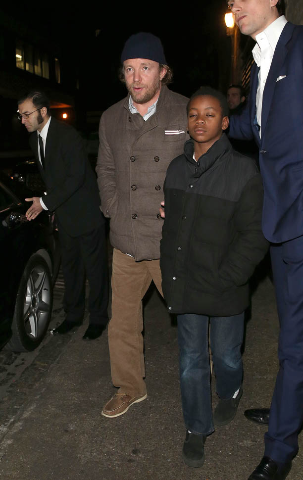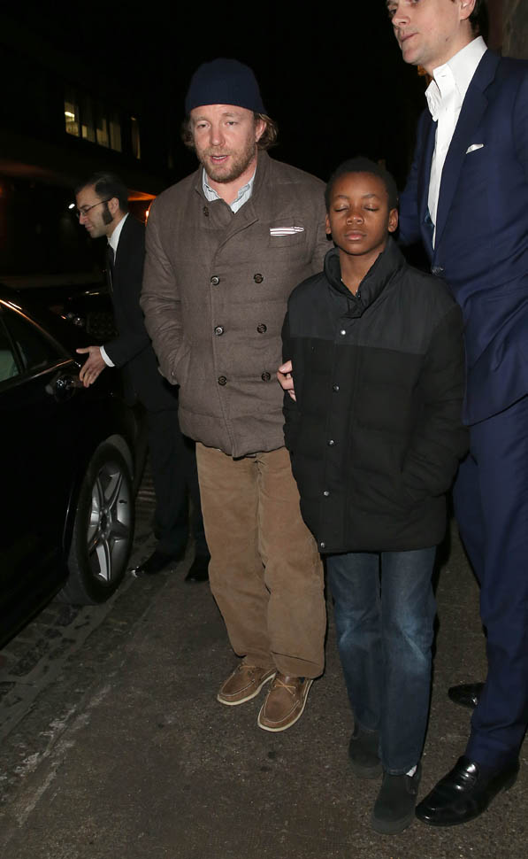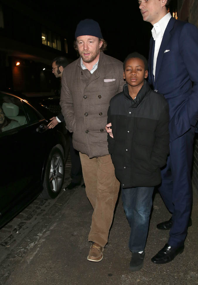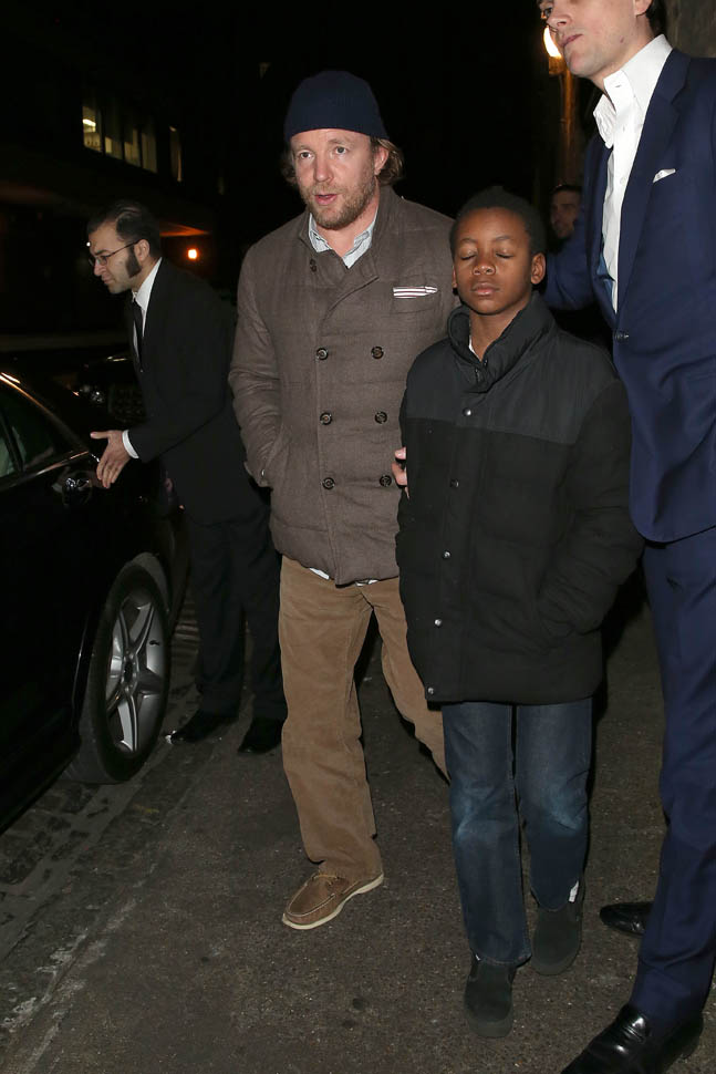And check out Guy Ritchie leaving Chiltern in London last night with David Banda. I’m not sure if David’s closed eyes are from the flashbulbs or if it’s because it was 1am.